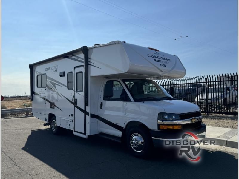 Coachmen Freelander Class C gas motorhome 21QSS Chevy 3500 highlights: 57" x 95" Bunk-Over Cab J-Lounge Wardrobe Microwave You will be met with comfort at every turn in this coach for six! Once you have stopped for the day, you can make lunch on the three burner cooktop and grab a cold drink from the 10 cu. ft. 12V refrigerator. There is a J-lounge with a pedestal table and extension where you can dine together, and the swing-arm TV in the cab will let you check the weather before heading outdoors. The rear corner full bath will let everyone freshen up when you return from hiking, and you'll enjoy a queen bed to sleep on each night, while your guest take the J-lounge and cab-over bunk! With any Freelander SS Class C gas motorhome by Coachmen, you will find a quality constructed coach for all your journeys. There is AlphaPly TPO seamless one-piece roof material and a max-length power awning with an LED light strip so you can enjoy evenings outdoors. You will also find a molded fiberglass front cap, a rotocast rear warehouse storage compartment, and an upgraded exterior safety grab handle. The mandatory SS Package includes a tankless water heater, running boards, and a towing hitch for your hauling needs. Head inside to enjoy the premium one-piece Thermofoil countertops and vinyl flooring, brushed nickle hardware, pleated night shades, and many more comforts. Bunk Over Cab