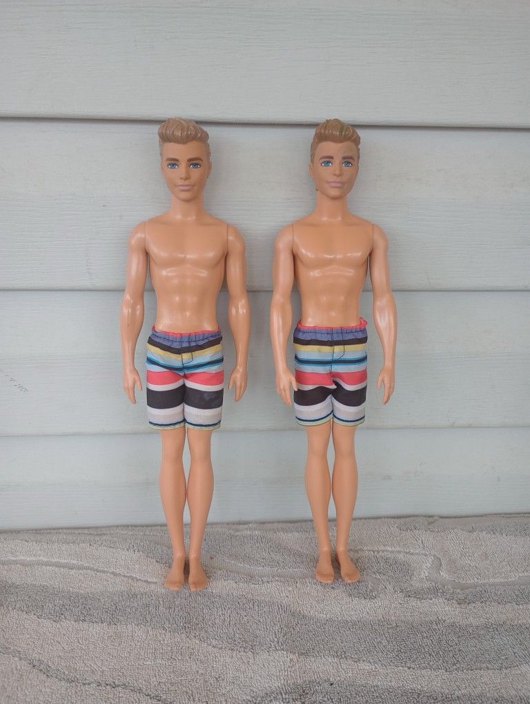 BARBIE WATER PLAY KEN BEACH SUMMER DOLL WITH PRINTED TRUNKS in good condition 1 of the ken doll has green marker stains on the face and head but no broken parts see pictures for more details