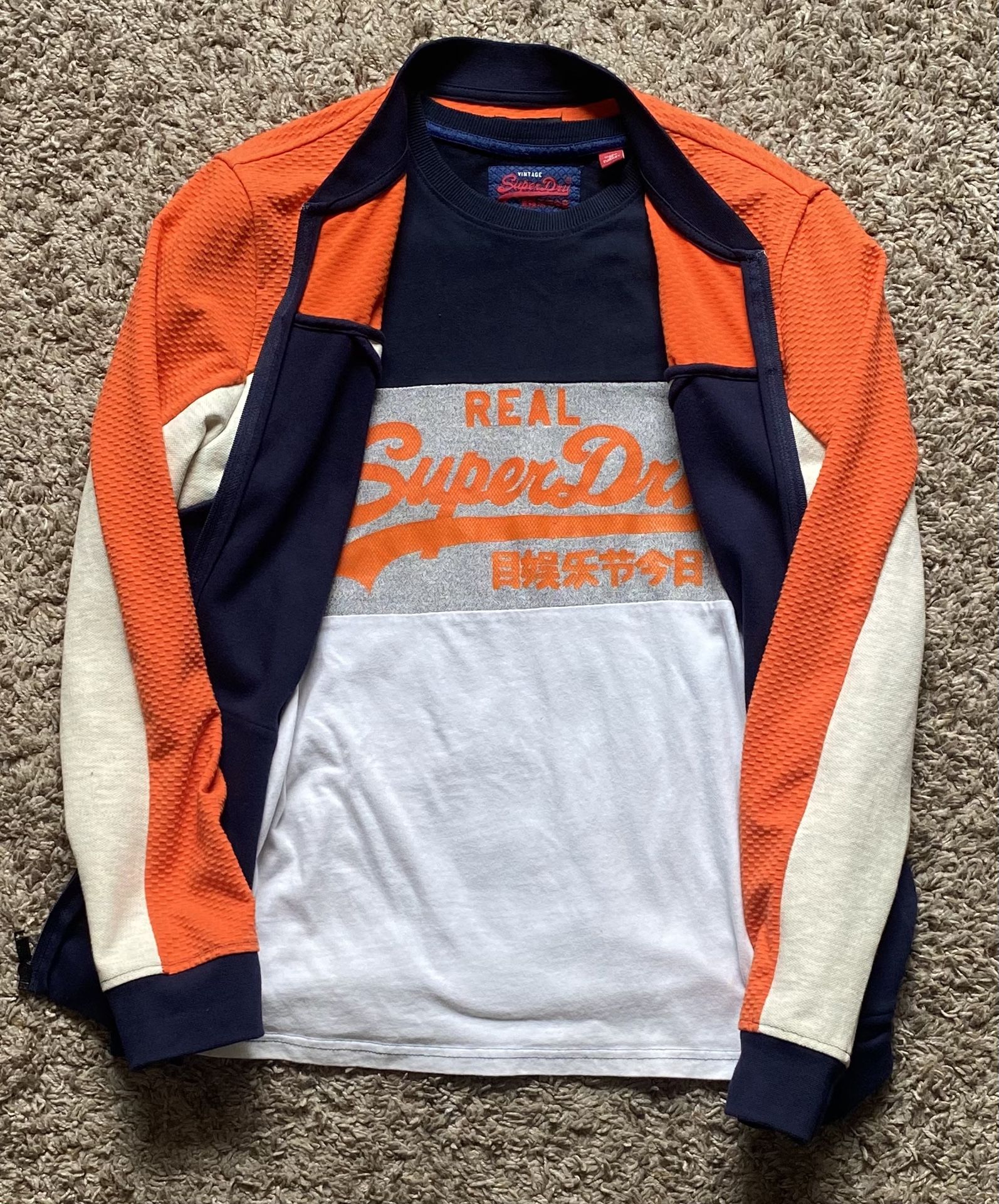 Super Dry Tee: $15 Alfani Jacket: $15 Full set: $25