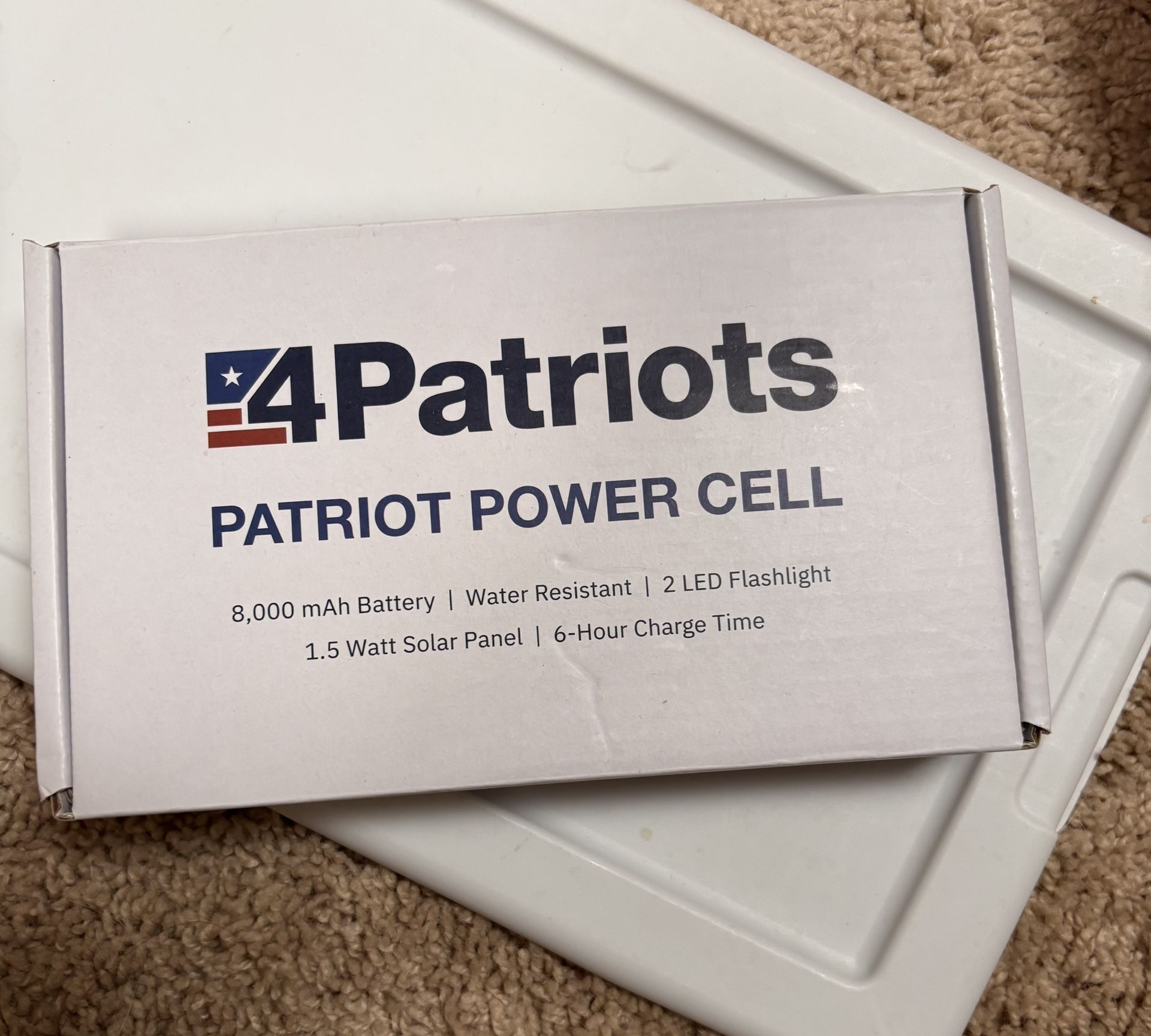 New! 4Patriots Patriot Power Cell 8000 mAh Battery 2 LED Flashlight Solar Panel. Asking $12 OBO. Mansfield 76063 by Matlock and Country Club Dr.
