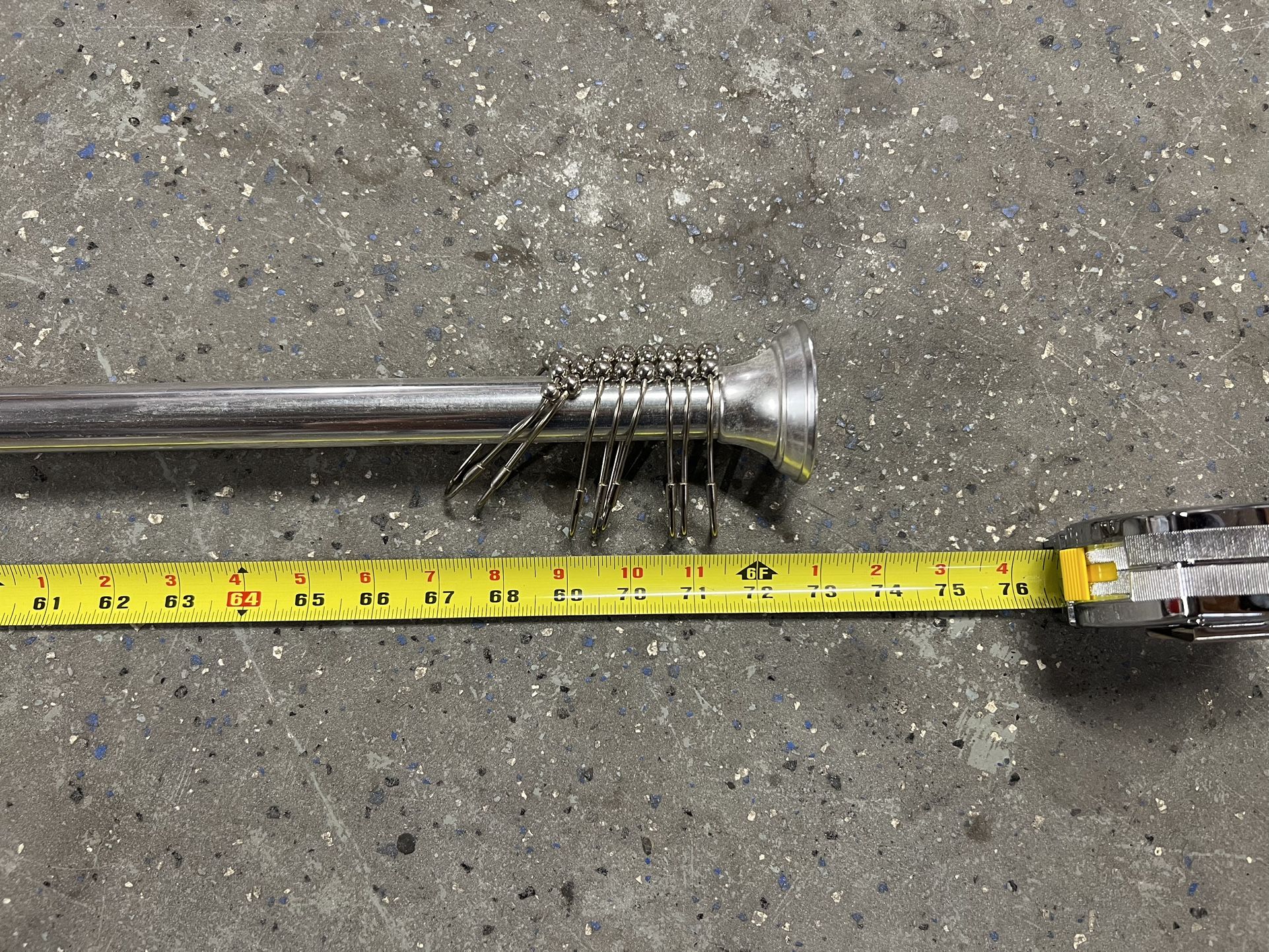 I upgraded entire matching sets throughout my house so this set is up for sale. Bought it new and used for short amount of time. The rod is expandable from 41” to 73”. It is like new condition, still shinning see pictures. Just wipe it up with wet cloth and it’s new again. There are 2 layer of curtain, one plastic and other is white fabric. All sliding rings are there. Please send me a text to come, check it out yourself to believe it and carry it home. I won’t ship it under any circumstances. Happy searching everyone!