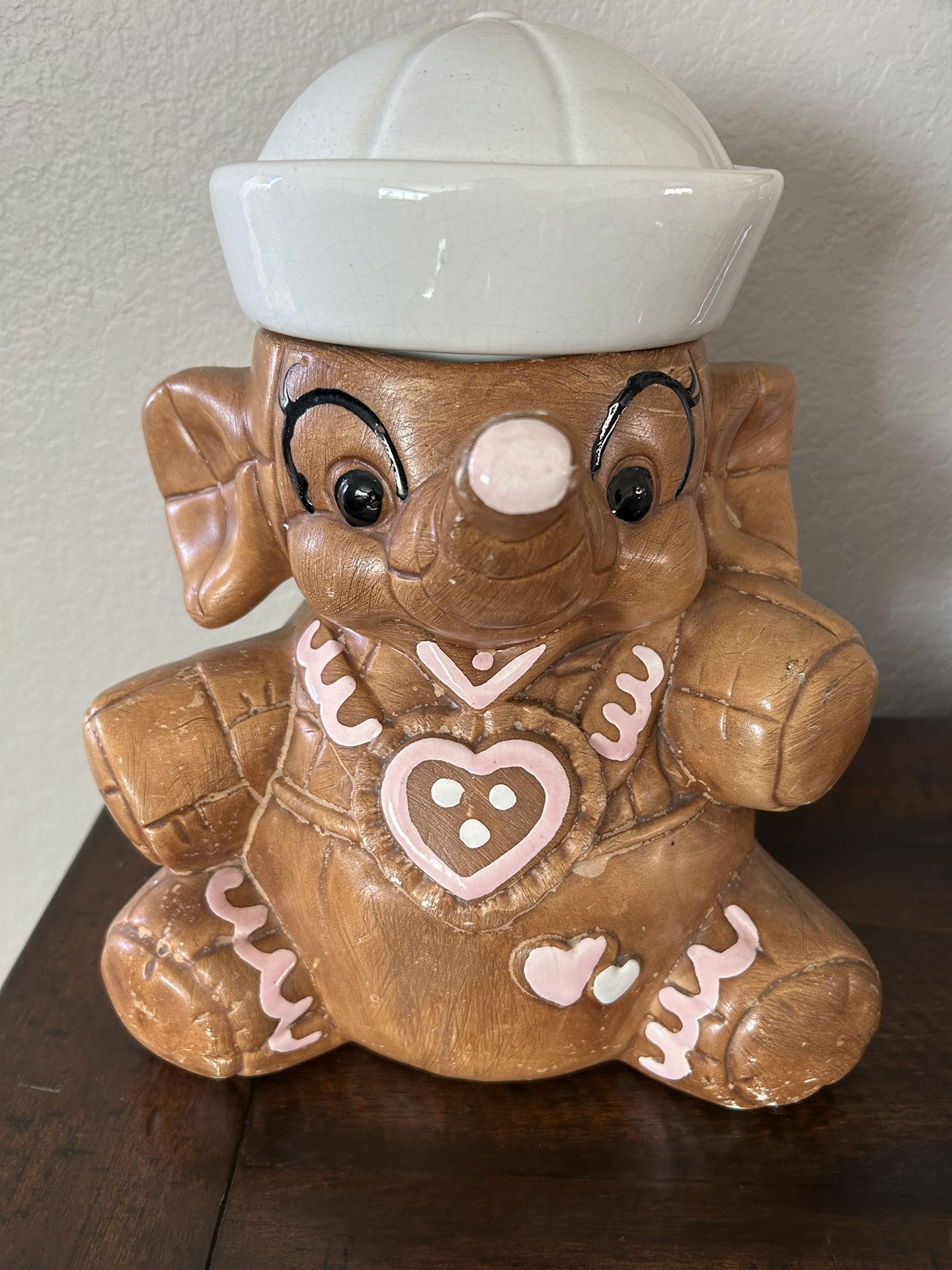 Vintage ceramic cookie jar shaped like a baby elephant and dressed as a gingerbread sailor. Item comes as pictured. $60 exact cash pick up Moreno Valley *tap profile picture to see other listings