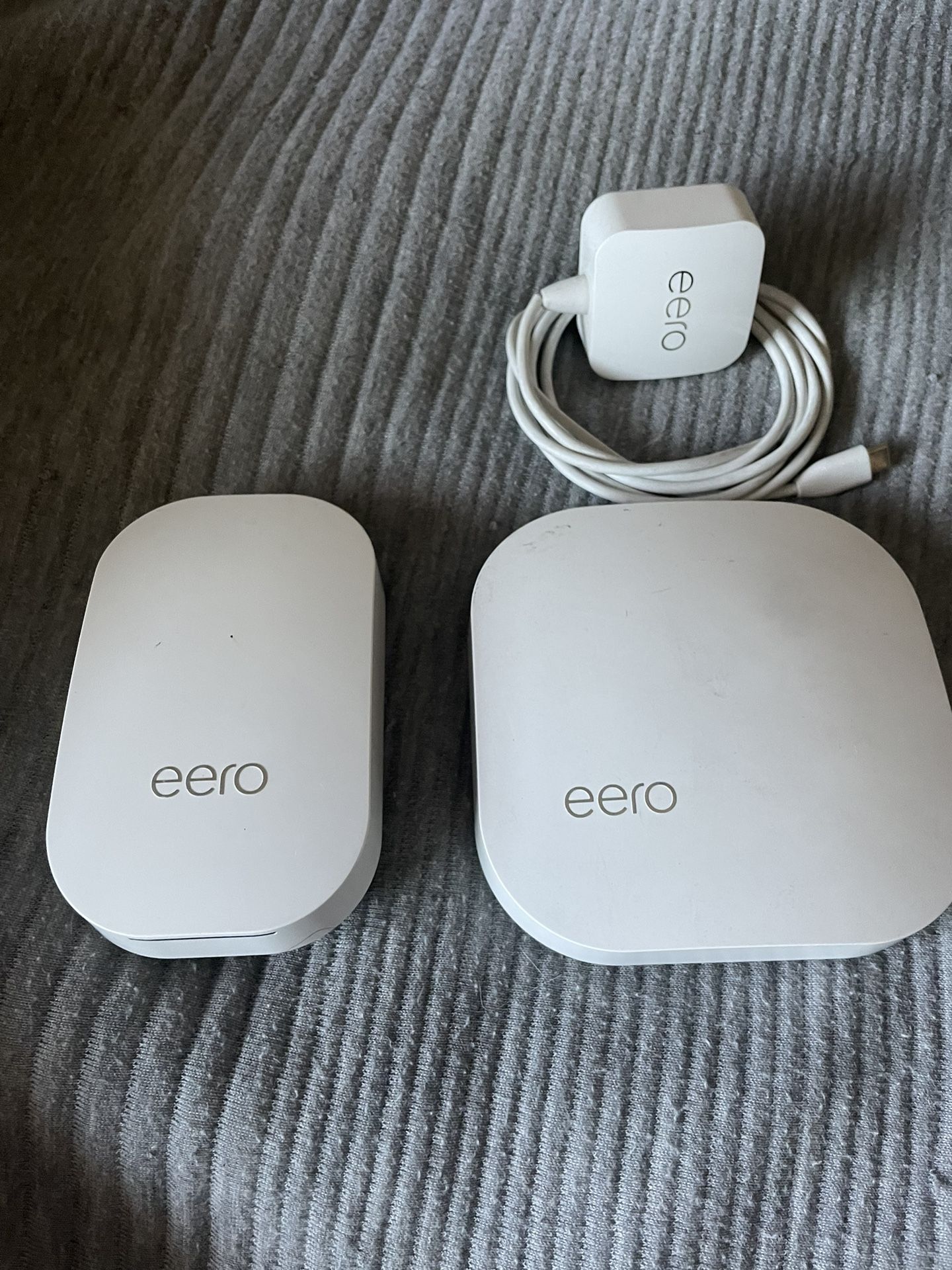 1 eero pro router. 2 ports, 1 for modem and 1 for any device. 1 beacon. Easy connect. Can control via an app on your phone.