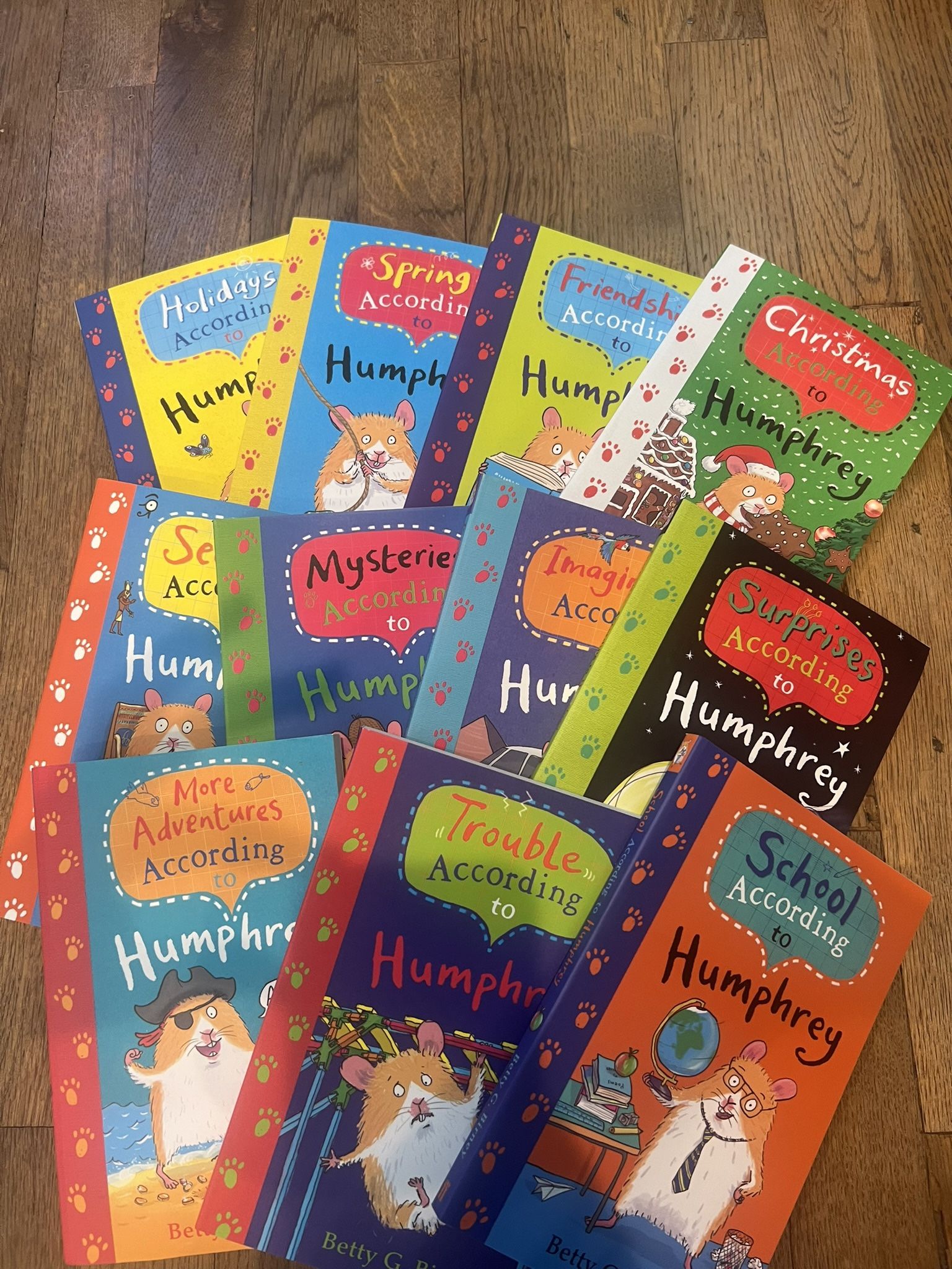 Book overview Please Note That The Following Individual Books As Per Original ISBN and Cover Image In this Listing shall be Dispatched According to Humphrey Series 12 Books Collection Set By Betty G. Surprises According to A classroom hamster has to be ready for anything, but suddenly there are LOTS-LOTS-LOTS of big surprises. School According to Dear Friends, After a fur-raising holiday at Camp Happy Hollow, I looked forward to returning to Room. Friendship According to After the holidays, Humphrey is shocked by a big surprise in Room 26-a new class pet! Holidays According to The World According to You can learn a lot about life by observing another species. That’s what Humphrey was told. Christmas According to The classroom pets Humphrey the hamster and Og the frog are spending the holidays at Jenny. Spring According to Spring has sprung and everyone at Longfellow School, including Ms. Brisbane's class. Imagination According to Imaginations are running wild in Mrs. Brisbane’s class, but Humphrey is stumped. Secrets According to So many secrets are flying around Room 26 that Humphrey can barely keep track. Mysteries According to Humphrey has always investigated things, like why Speak-Up-Sayeh was so quiet. More Adventures According to When classroom pet Humphreys schoolmates stage a sailing competition on Potters Pond. Trouble According to Humphrey loves to solve problems for his classmates in Room 26, but he never meant to create one!