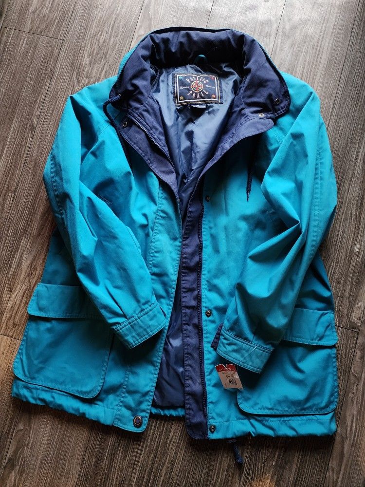 Got this size M coat it also has a hoodie attached to it that you can hide on the collar. 90s jacket /coat.