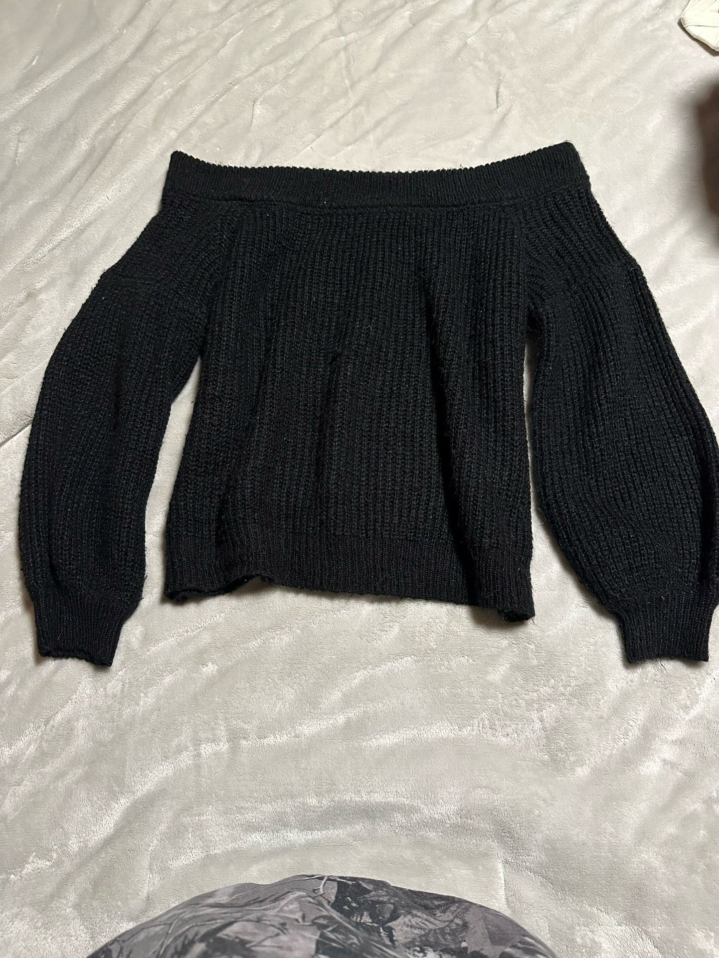 Black off the shoulder sweater. Super cute and cozy. Can dress up or down. Charlotte Russe brand. Well taken care of.