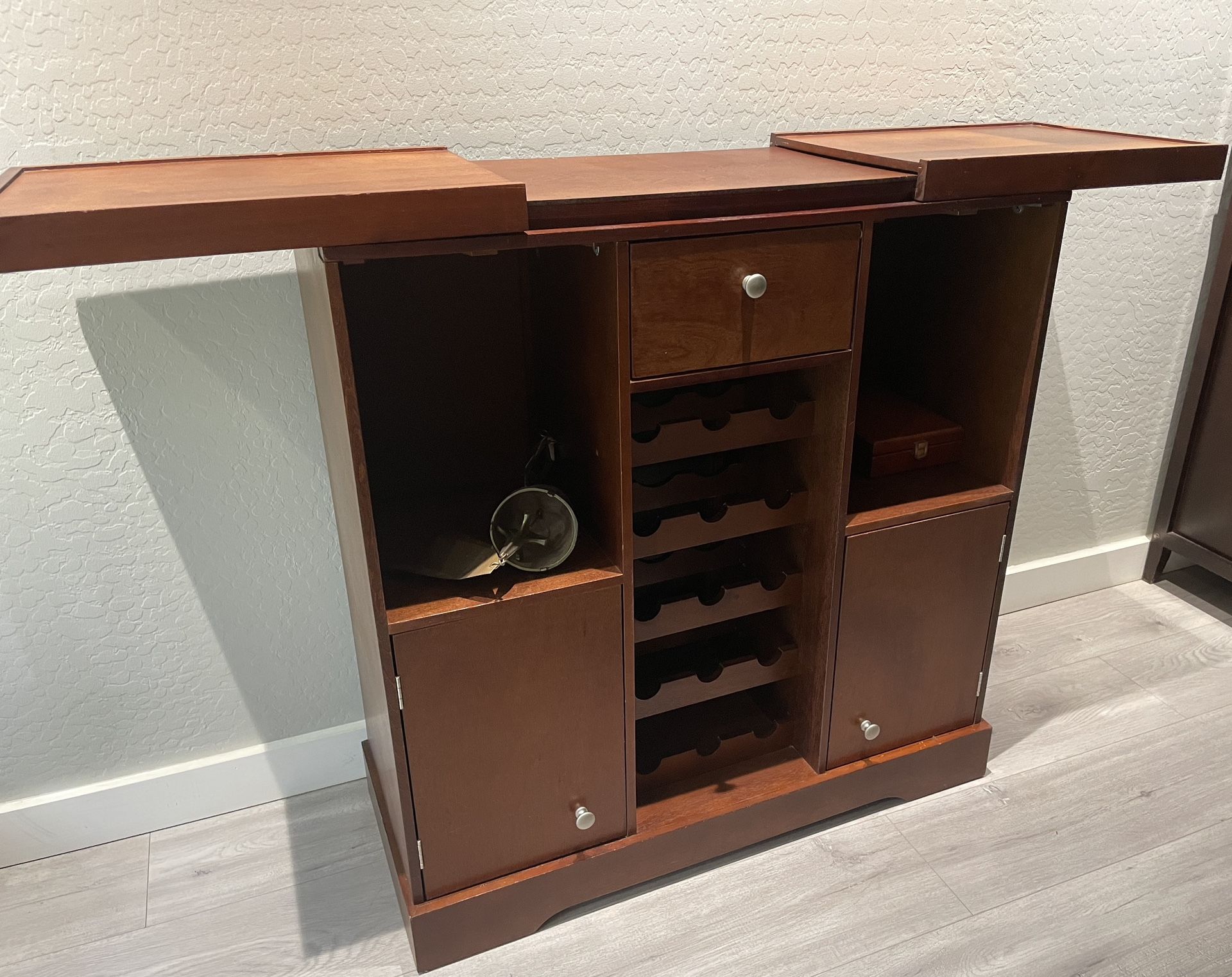This is a Great looking wine cabinet. However, I don’t really have a need for it anymore. Please look at my other items to make an even better deal. Must pick up and bring downstairs. 53 1/2” wide X 35 1/2” tall $100 or best offer