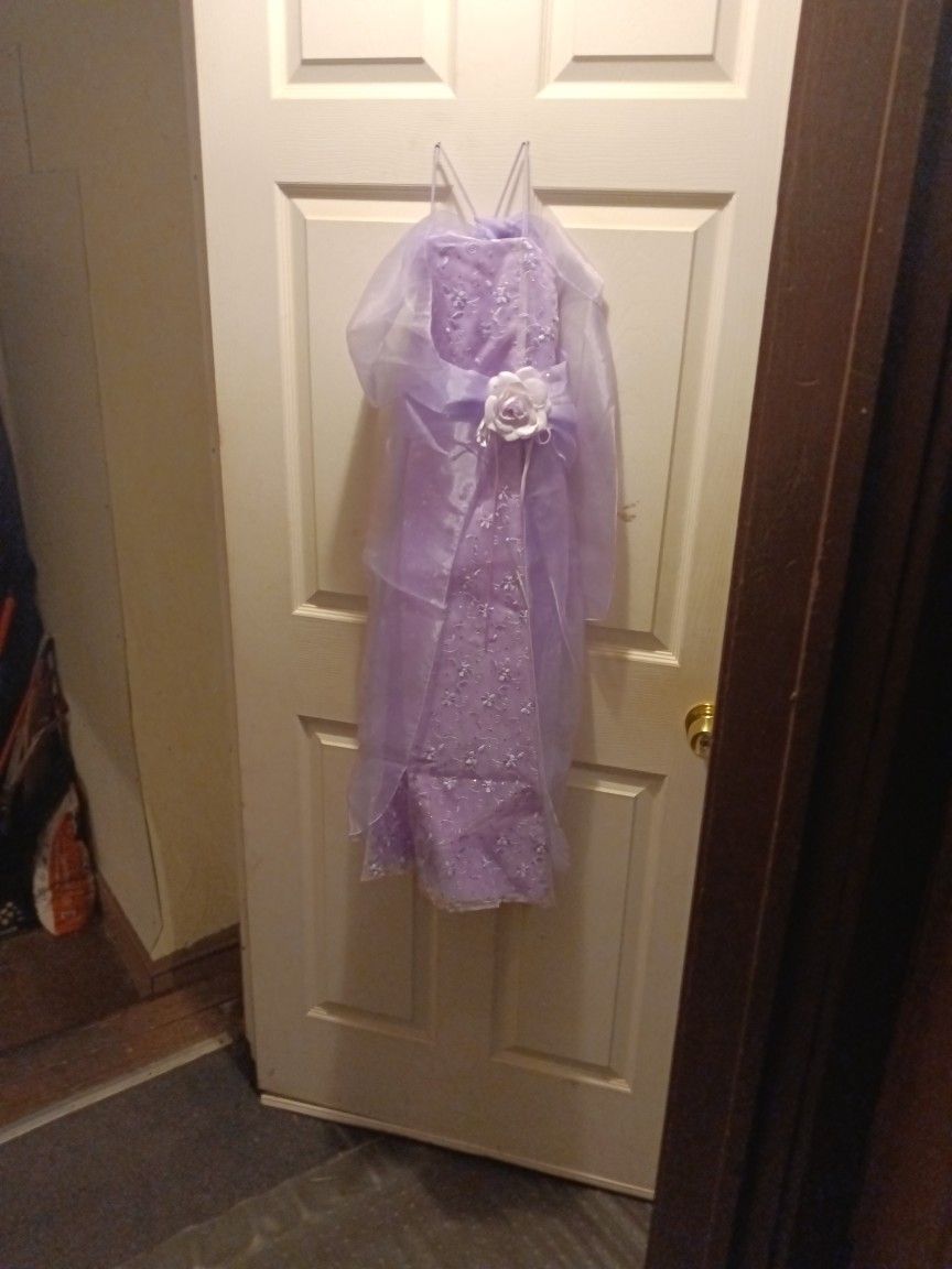 Little girls lavish lavender flower embroidered & sequins full length dress w/soda scarf
