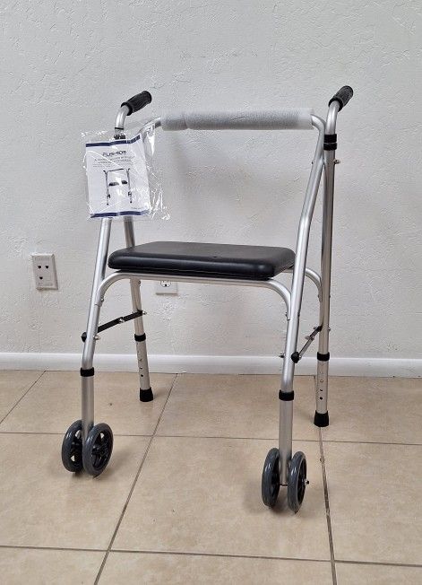 Standard Walker,Aluminum Folding Lightweight Walkers with Seat Support up to 300lbs,Adjustable Height with 5-inches, 2-Wheels Narrow Valkers for Seniors&Handicapped.