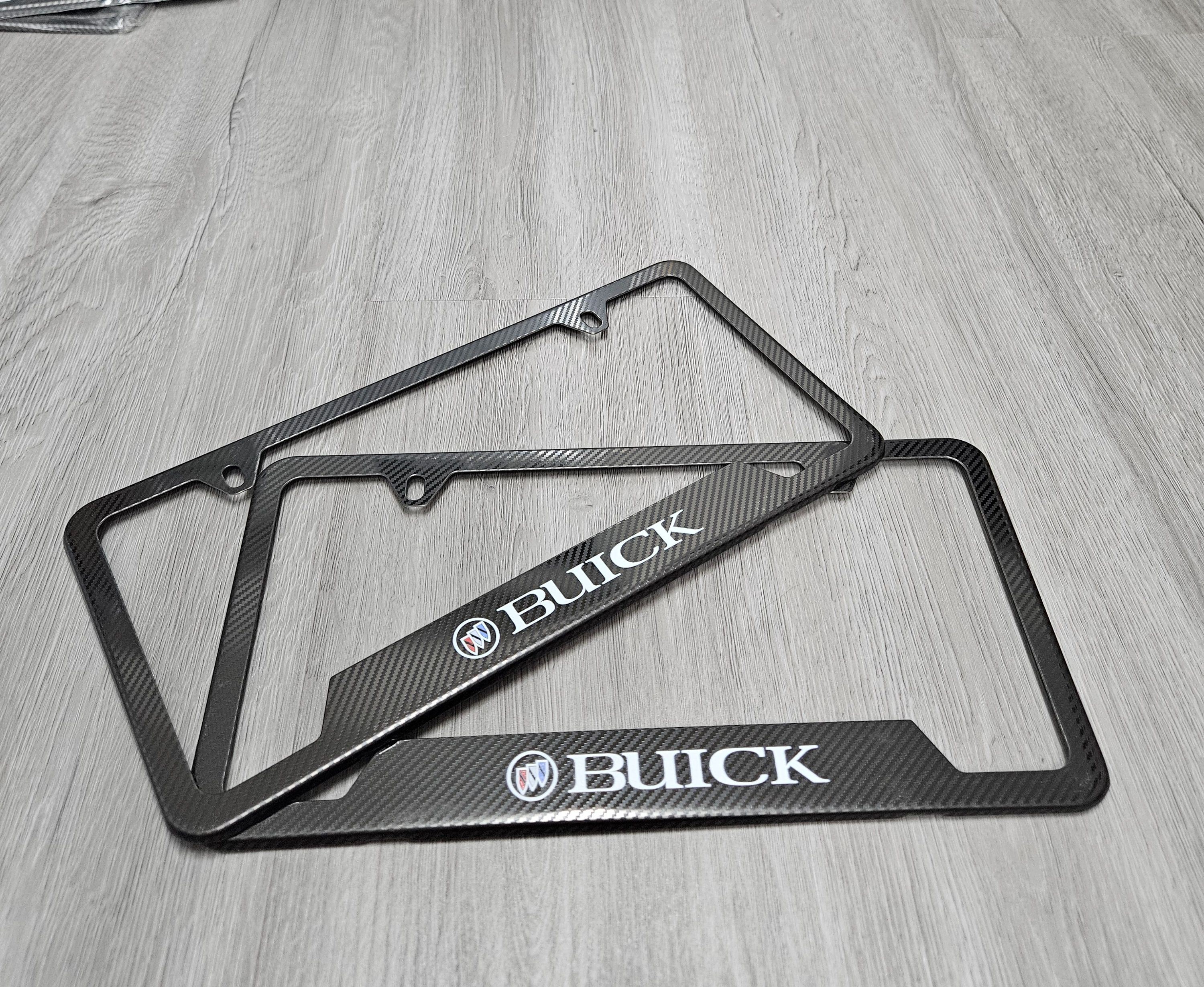 Brand New Universal 2PCS Buick Metal Carbon Fiber Style License Plate Frame