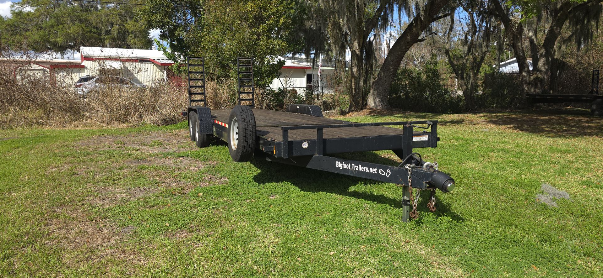 Bigfoot equipment trailer. 26ft deck Large adjustable ramps, 10k GVWR. Brakes on both axles, lights work. New spare. Clean fl title in hand