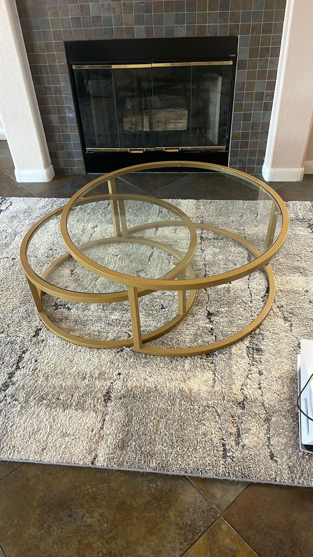 Tow piece stackable coffee table with glass tops.