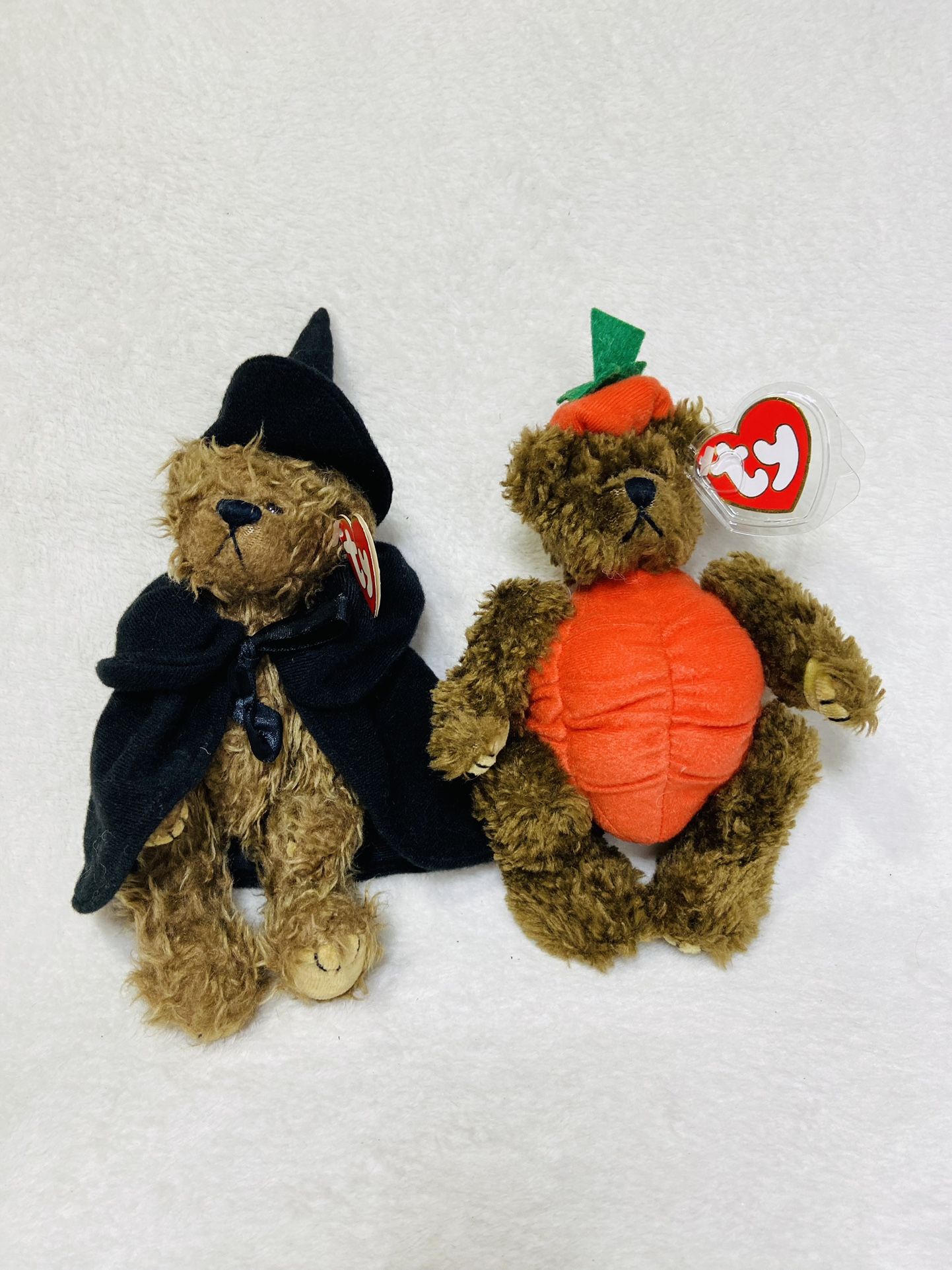 1990s NWT TY Beanie Babies Pumpkin the Bear Beanie Baby + Witch Bear Halloween