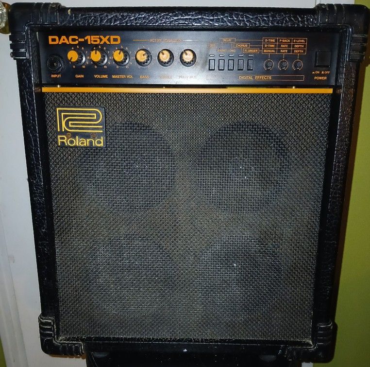 Here's a really rare Roland DAC-15XD guitar amp that was made in the mid '80s in Japan. This works perfectly and sounds great. This is 15 solid state watts into four 4" Roland speakers. The amp is very similar to the JC (Jazz Chorus) line of amps with the built in chorus, but this also has built in delay and flanger. This shows signs of use and play, but nothing major. These are open back amps, but a previous owner made a removable back panel to give more variety. Several options for footswitches, line out and headphones on the back. I really like this amp, but just need to thin the herd. Please do your own research to learn more about this amp. There are videos on Youtube worth checking out to see and hear. From a smoke free home. $175 or best cash offer. I will consider trades for other music gear. This is located in FORT WORTH. IF THIS AD IS STILL POSTED, THEN THIS IS STILL AVAILABLE.