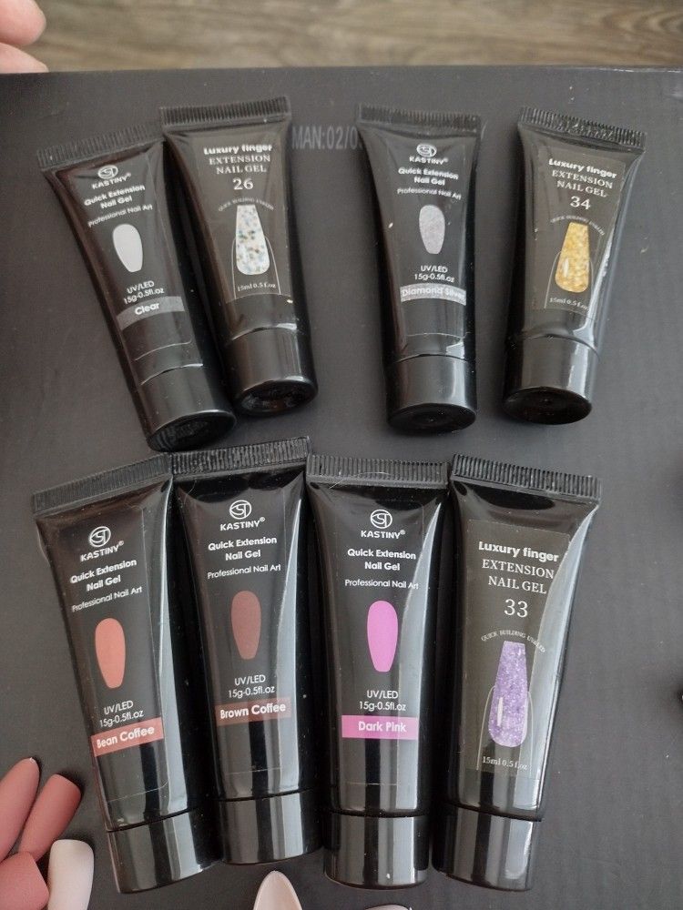 All new. 8 bottles quick extension nail gel. $6 Located off NE 33rd Lombard st.