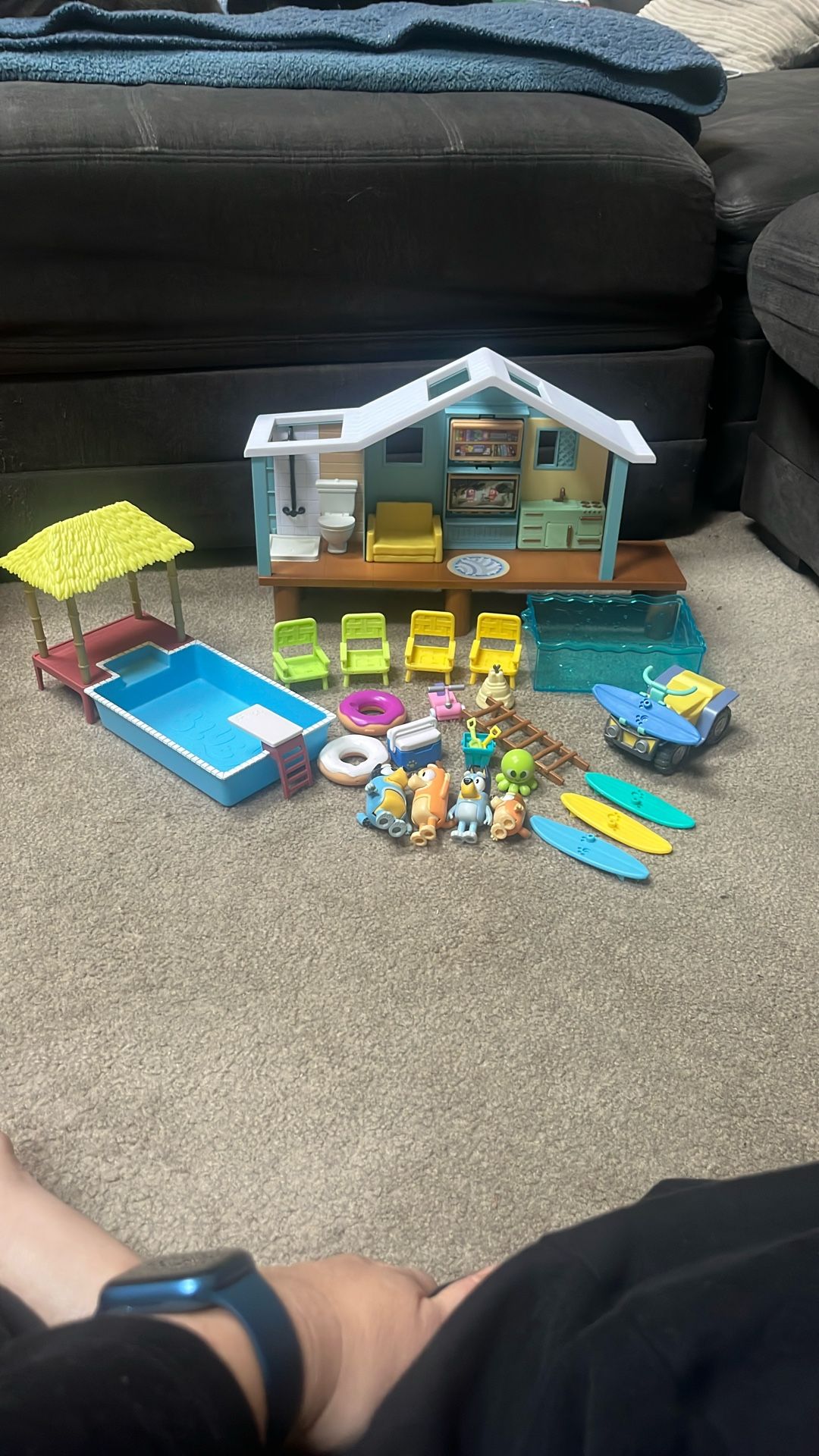 These are not complete sets and there is a different ladder then what comes with set. The pool ladder has a crack on the inside see photo. Porch pick up or meet up near Seattle hill elementary school. Cash only please. Smoke free pet friendly house. Some scratches from play.
