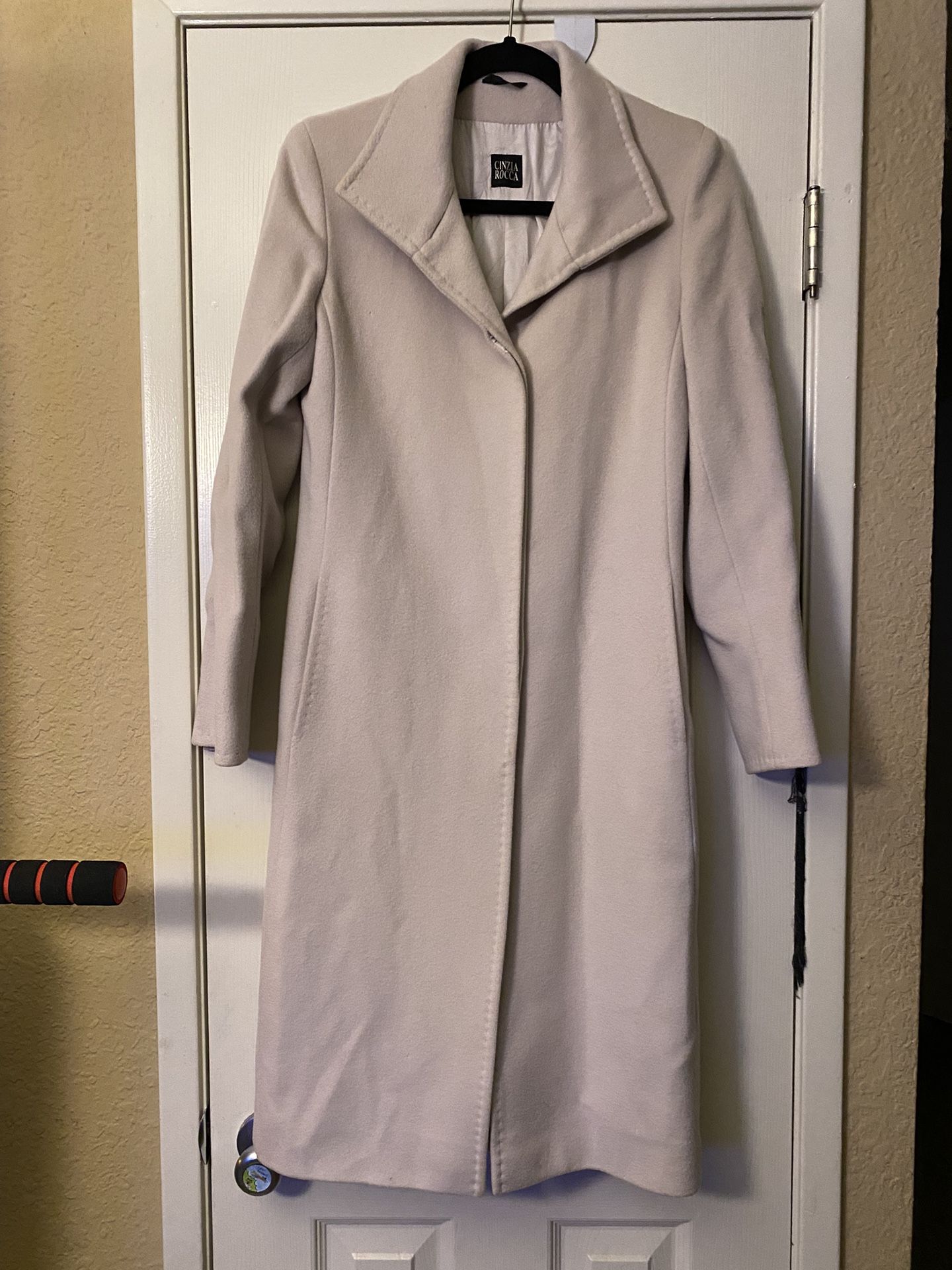 cinzia rocca long womans coat. 100% wool. woman's size 4. has pockets and buttons closed in front. like new condition no stains