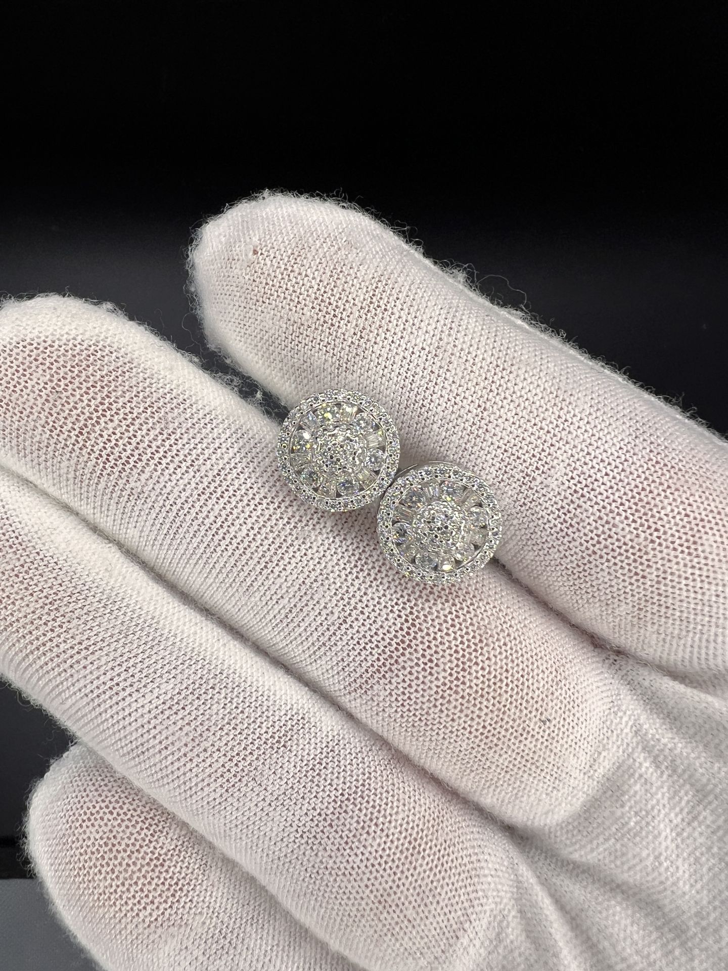 Beautiful moissanite earrings. These earrings pass any and all diamond testers. These earrings are 925 silver coated with a beautiful white gold color. These earrings are hand set by a jeweler so the stones won't fall . We have a diamond tester to prove these pass tester or feel free to bring your own. Only asking 130$