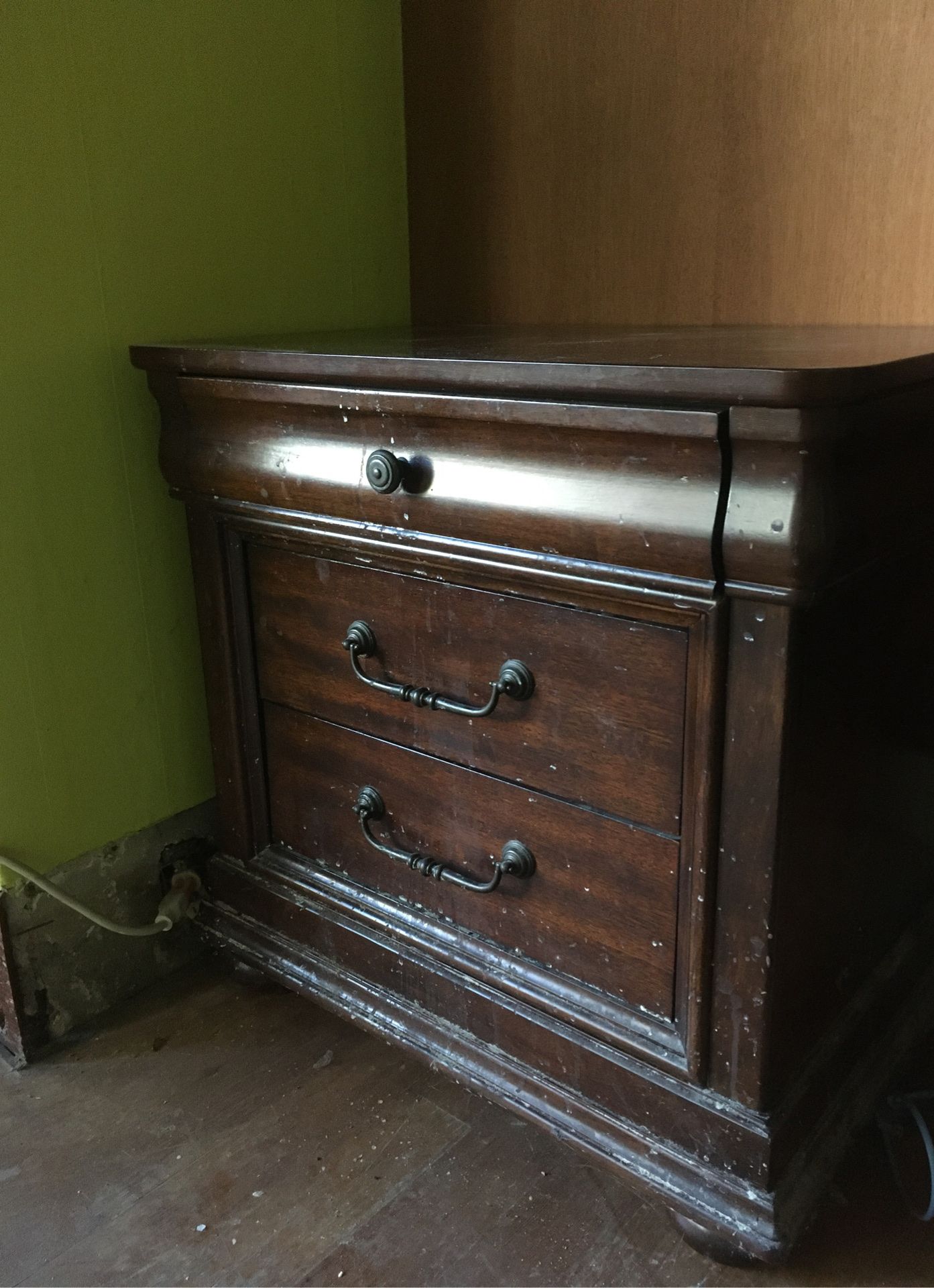Sturdy material! Measures 27 inches long x 17 inches width x 27 inches tall. Has three drawers. Just needs a good clean up! Uhaul. Will accept serious offers. Please message only if you have an offer or interest to come see it!