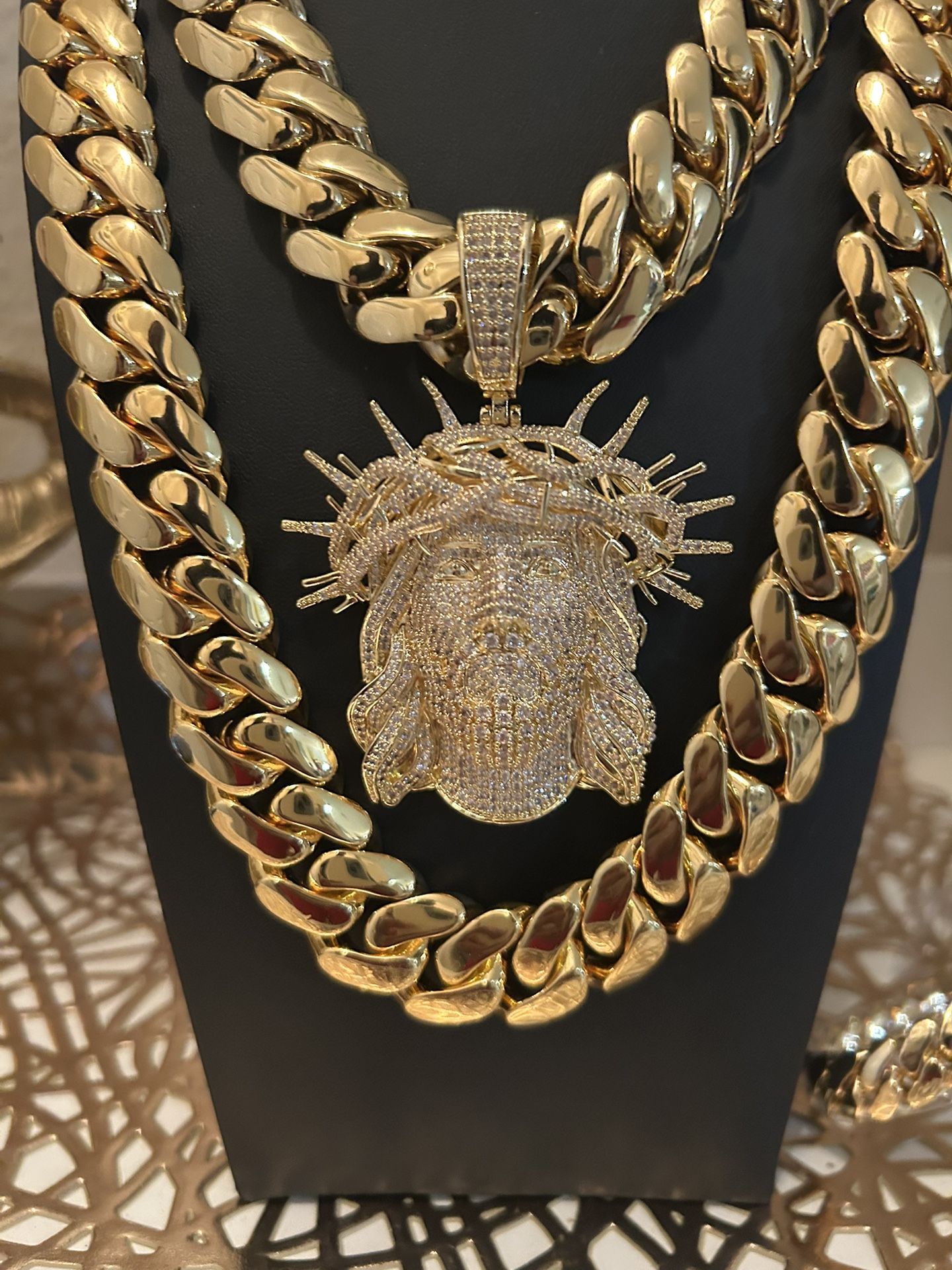 đź‘‘Premium Quality Miami Cuban Link Gold Plated Waterpoof Chain 20mm | 22mm & Jesus Pendant