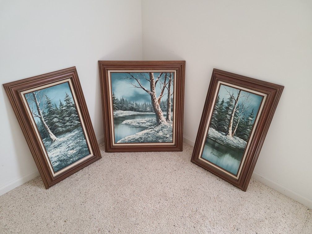 3PC WINTER LANSCAPE J. MEDINA OIL PAINTINGS