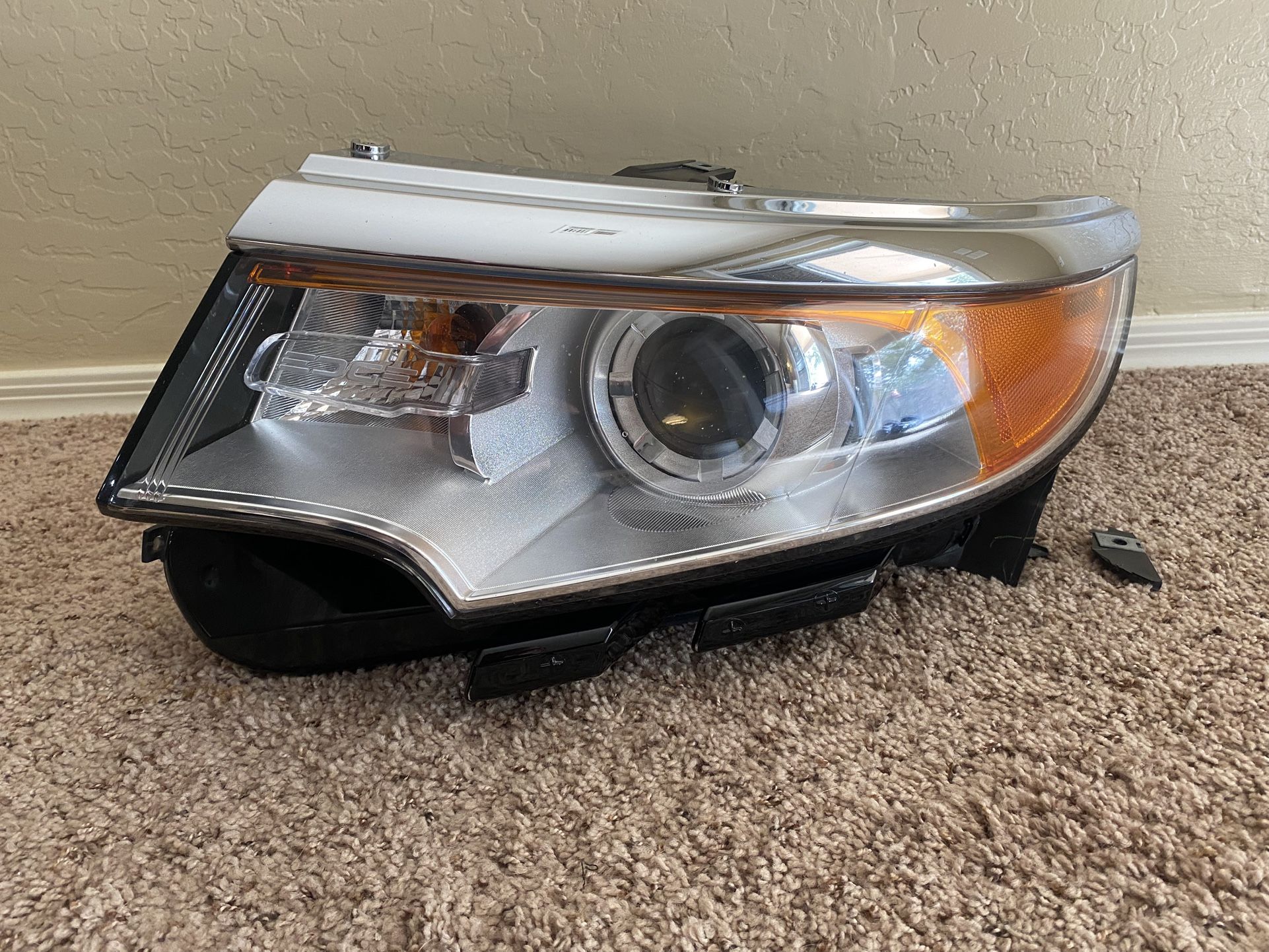 I have a factory/OEM Ford Edge left/driver side headlight for sale off a 2013 Edge. I believe it will fit 2011-2014 Ford Edge models with the HID/Xenon style headlights. There is a tab broken by where the fender and bumper meet (see pictures). The broken tab is included and could be very easily glued back on. Other than that this is a very nice used headlight with nothing else broken or repaired. The lens is nice and clear. The HID bulb, cover, and module are not included. The factory part number is BT4Z-13008-KCP. Serious buyers only please. Low ballers will be ignored.