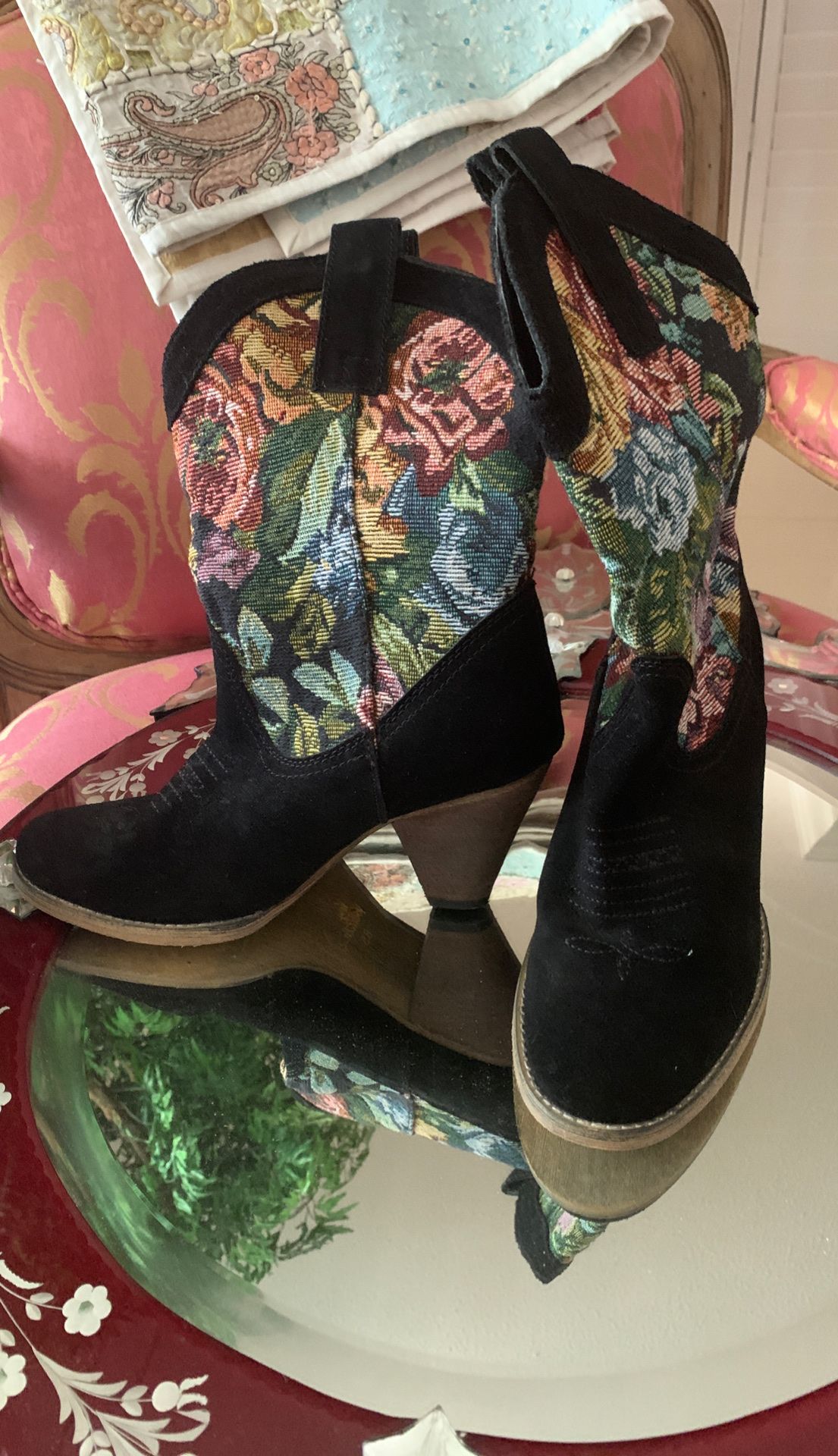 Suede tapestry boots