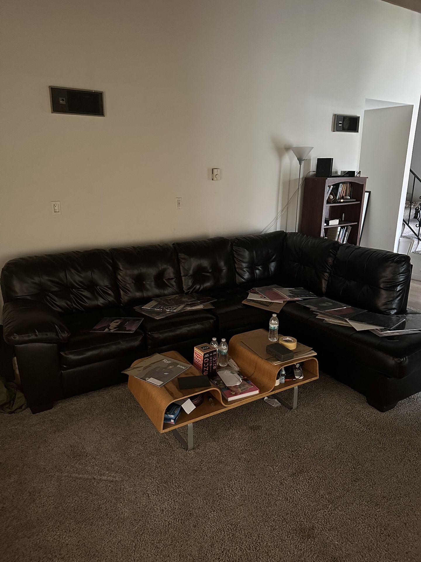 2 piece 120" by 85" Sectional Sofa with Rightside Chaise Comfortable Back and Seat Cushions, Smooth Leather, Rich Brown Color, Padded Armrests, Leather Treated and Cleaned. Great Shape. $1500+ Retail Value. Dimensions: Width 120in, 85in Chaise, Seat 20in, Depth 38in, Height 34in. Pickup only