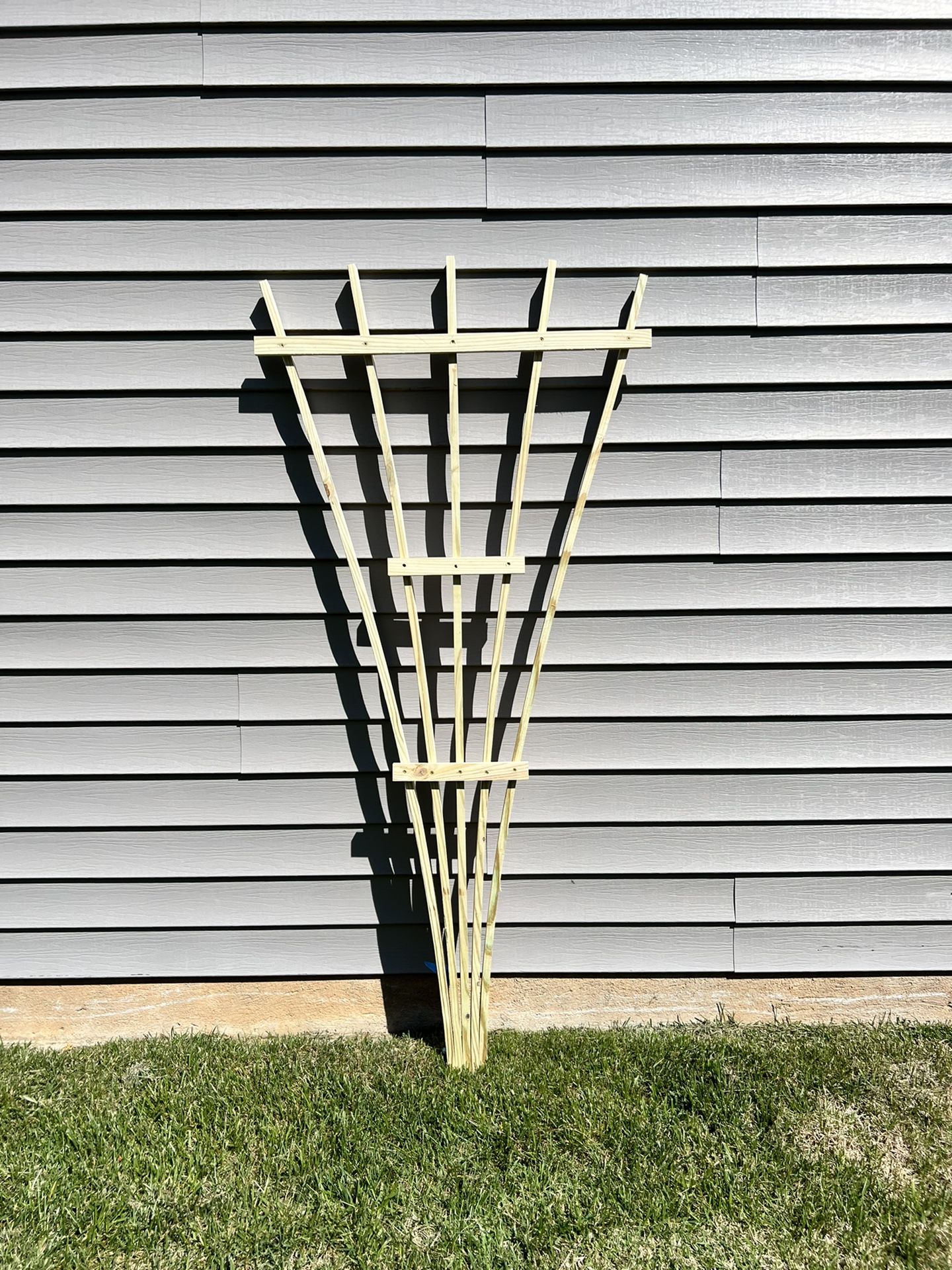 Hand built wooden garden trellis. It is 72” tall and 34” wide