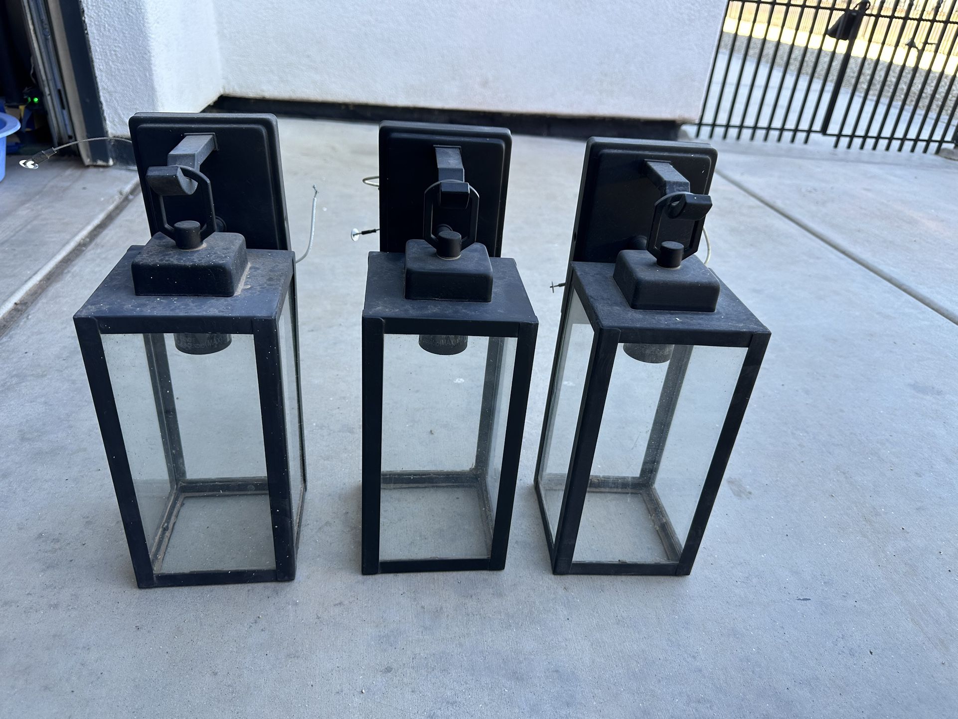 Nice Outdoor hardwired light fixtures! Great condition. Brackets are included and ready for install. Perfect for exterior walls, garage, patio, or entryway lighting. Measurements: • Light: 10” x 5” • Wall plate: 6 3/4” x 4.5” Details: ✔ Hardwired ✔ Mounting brackets included ✔ Weather-resistant ✔ Modern, clean look ✔ Easy install for any exterior wall Selling because no longer needed. $25 for all 3 or $10 each Cash or pickup preferred.