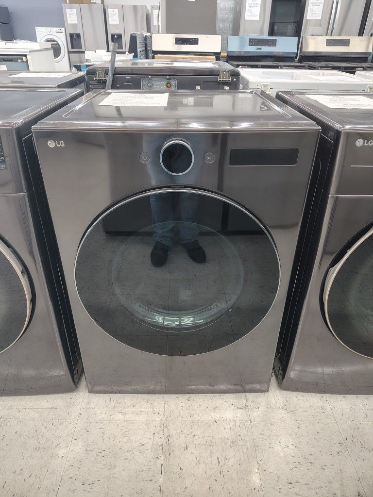 LG 7.4 cu. ft. Vented Stackable SMART Gas Dryer in Black Steel W/ TurboSteam and AI Sensor Dry Technology