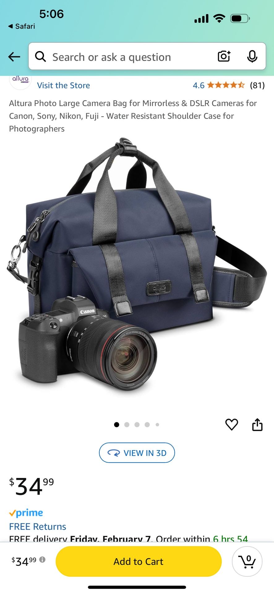 Altura Photo Large Camera Bag for Mirrorless & DSLR Cameras for Canon, Sony, Nikon, Fuji - Water Resistant Shoulder Case for Photographers. Brand new never used. I ordered it and its too small for what i need. $25
