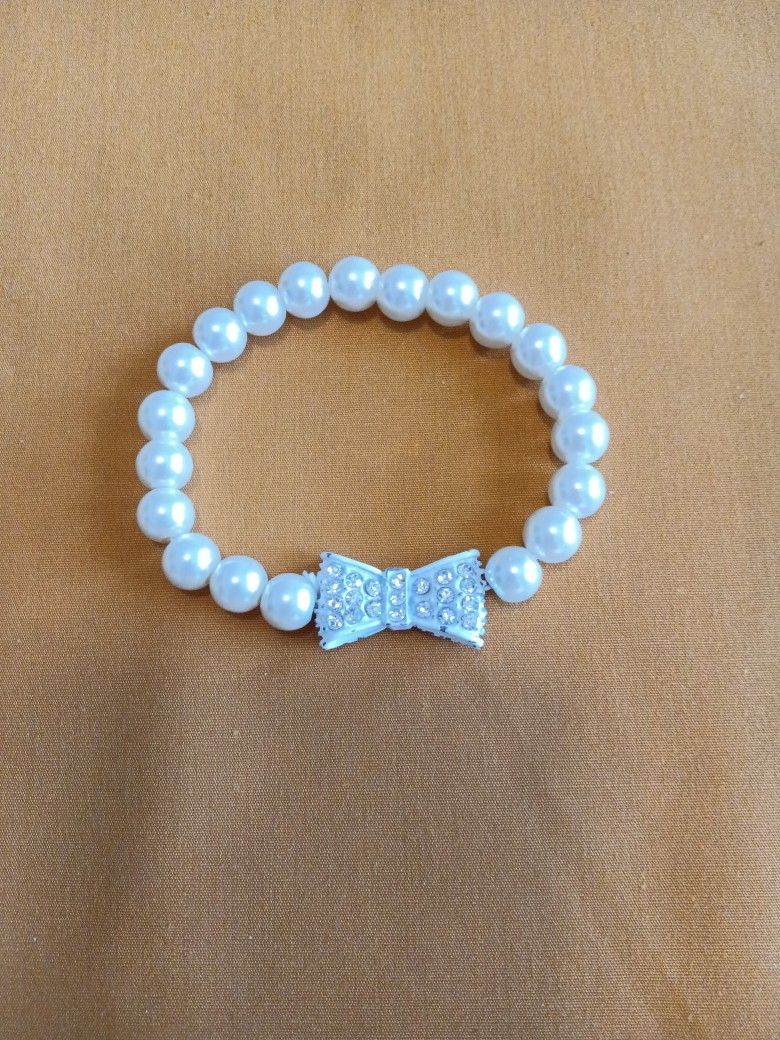 8 inch Pearl and Bow bracelet. (Cubic Zirconia)