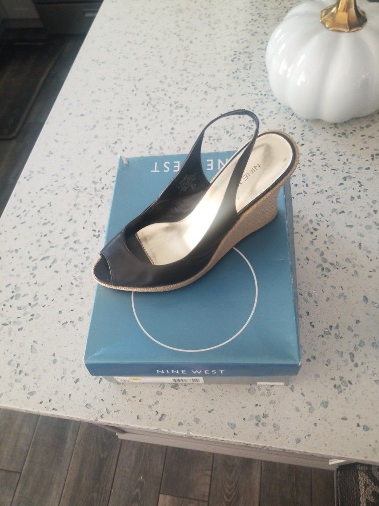 Black leather wedges Size 9. 5 brand Nine West