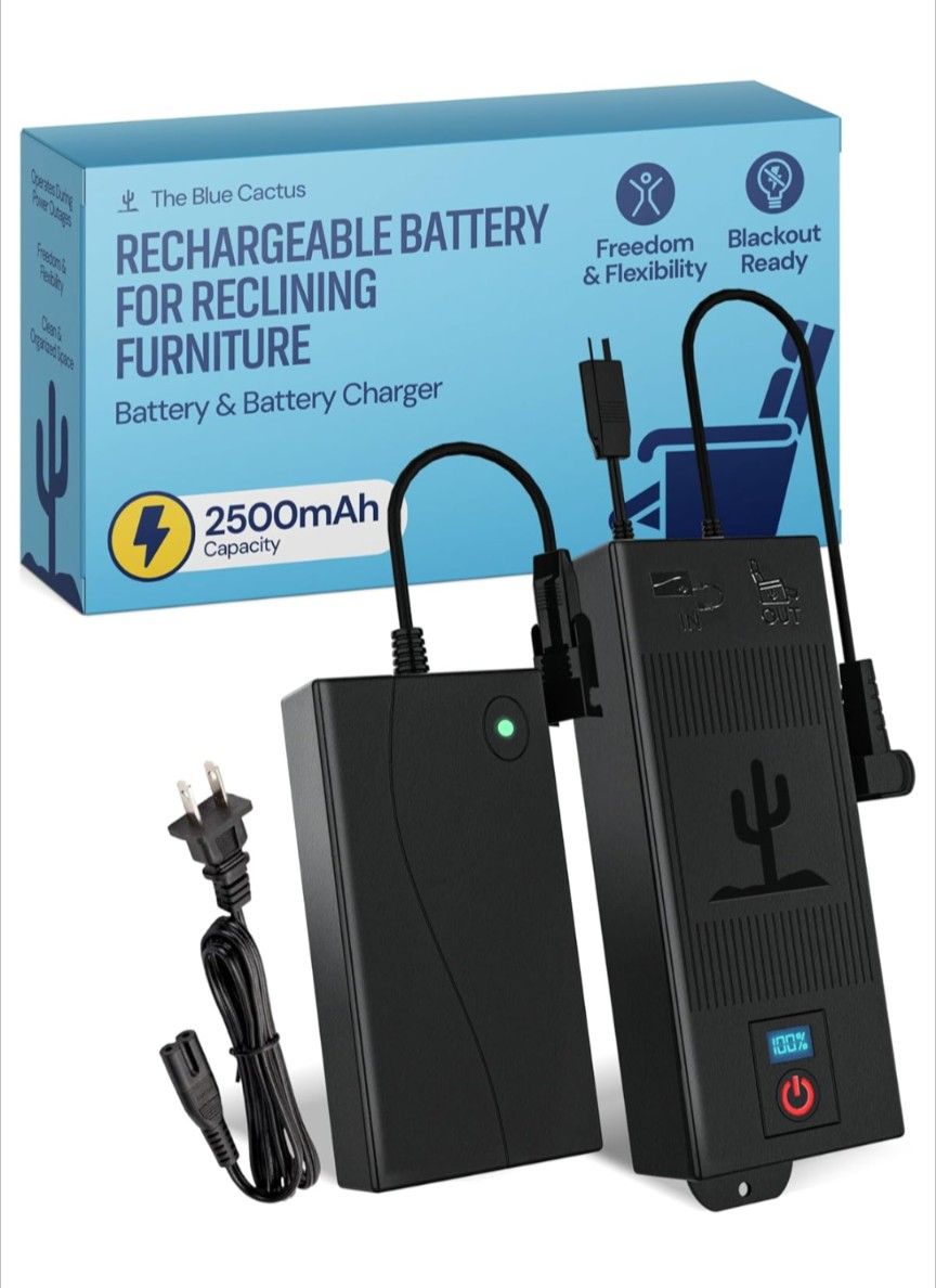 New in box The Blue Cactus Universal Battery Pack for Reclining Furniture with LCD Display- Wireless 2500mAh Rechargeable Battery for Electric Recliner, Power Sofa, Couch, Lift Chair- Fits 2-Pin Motion Furniture