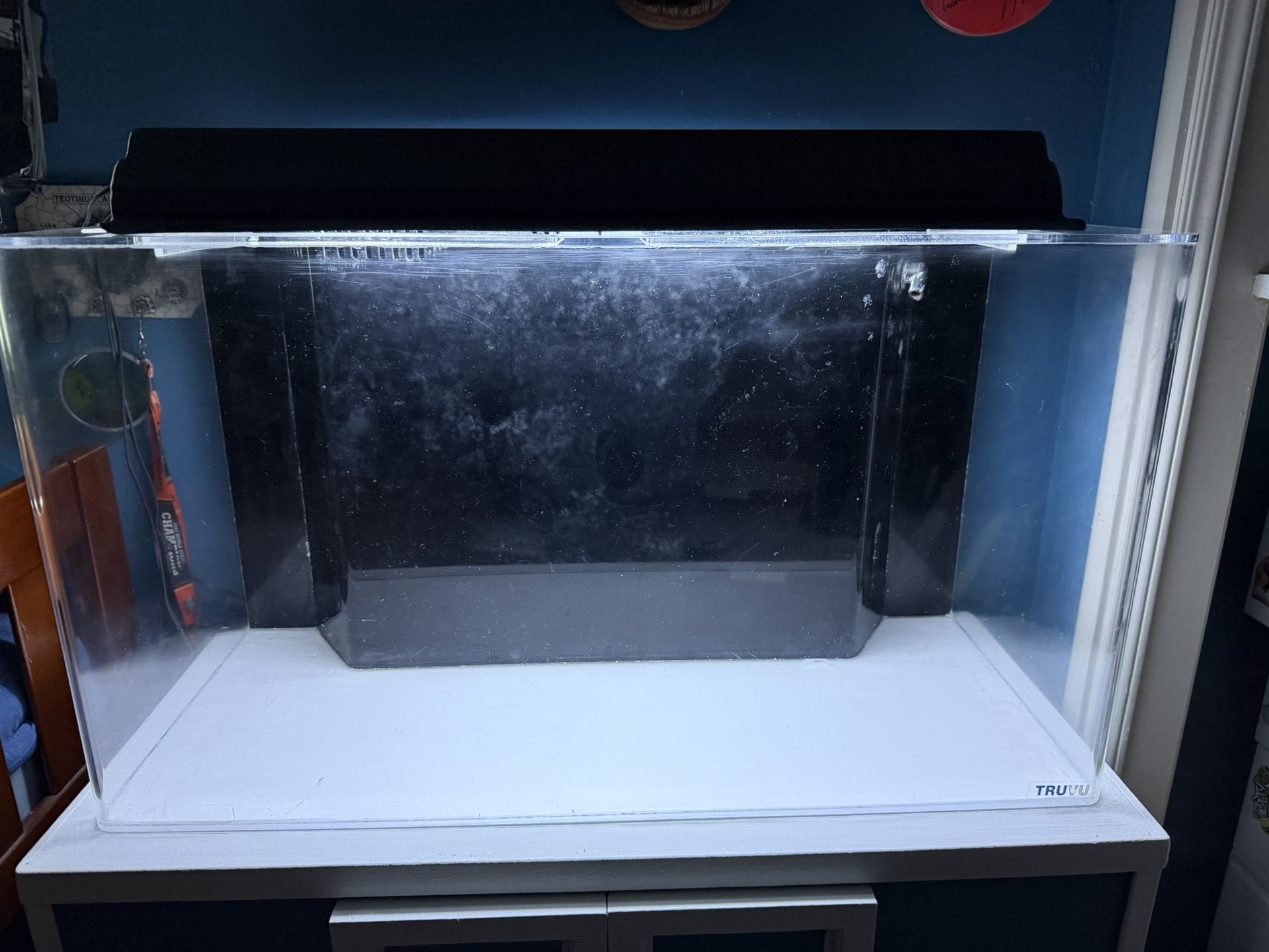 This is a all in one salt water ready aquarium 40 gallons pretty decent condition I will be wiping it down come with brand new wave maker and pump