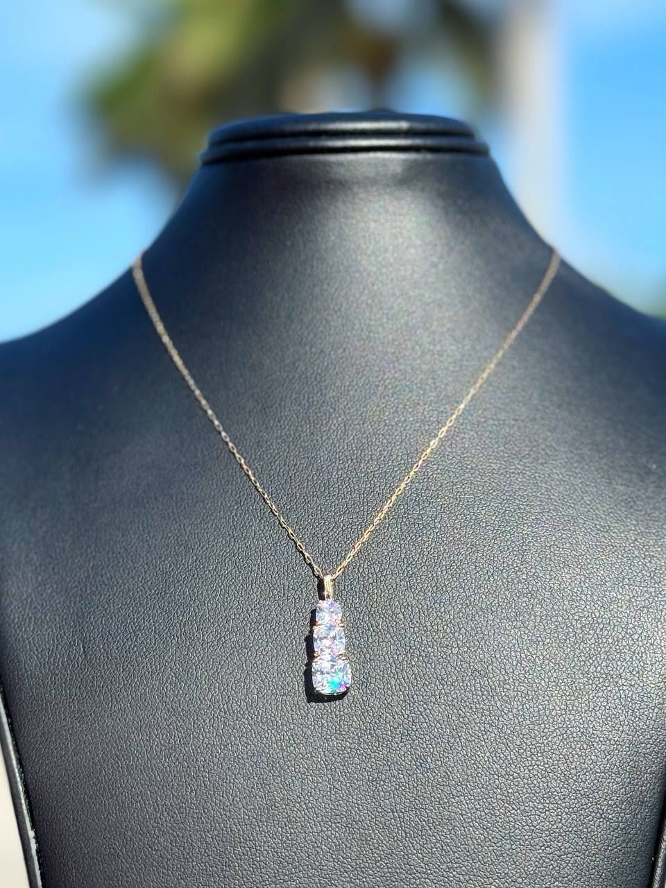 This gorgeous pendant made of 14k yellow gold with 3 CZ stones square shape. Comes with 14k solid yellow gold 15 inches chain. Total weight: 1.5 grams. Very beautiful and absolutely gorgeous set. The best choice for you! Perfect gift! β€οΈππ We buy Rolex and Audemars, patek . Do layaway in vipawn Boca Raton π₯ππΈ