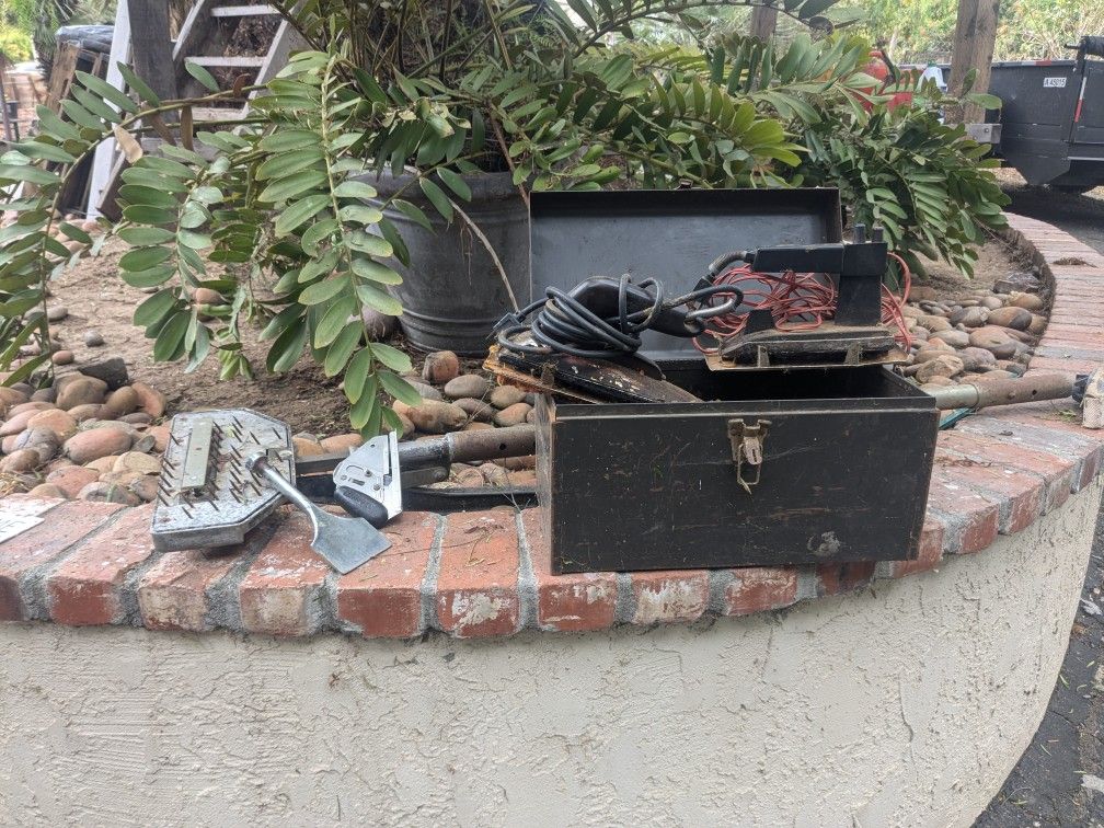 Power stretcher, two hot glue irons, and carpet cutter