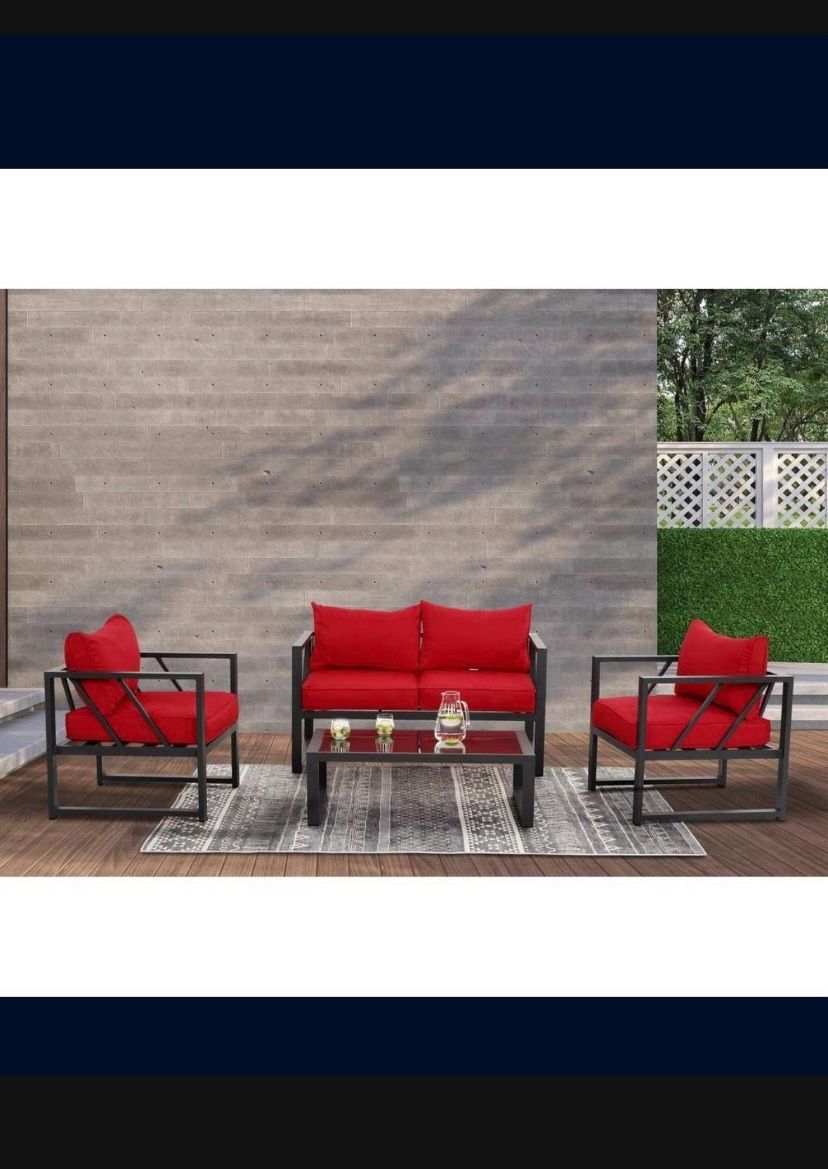 New Assembled 4-Piece Aluminum Patio Conversation Set with Red Cushions