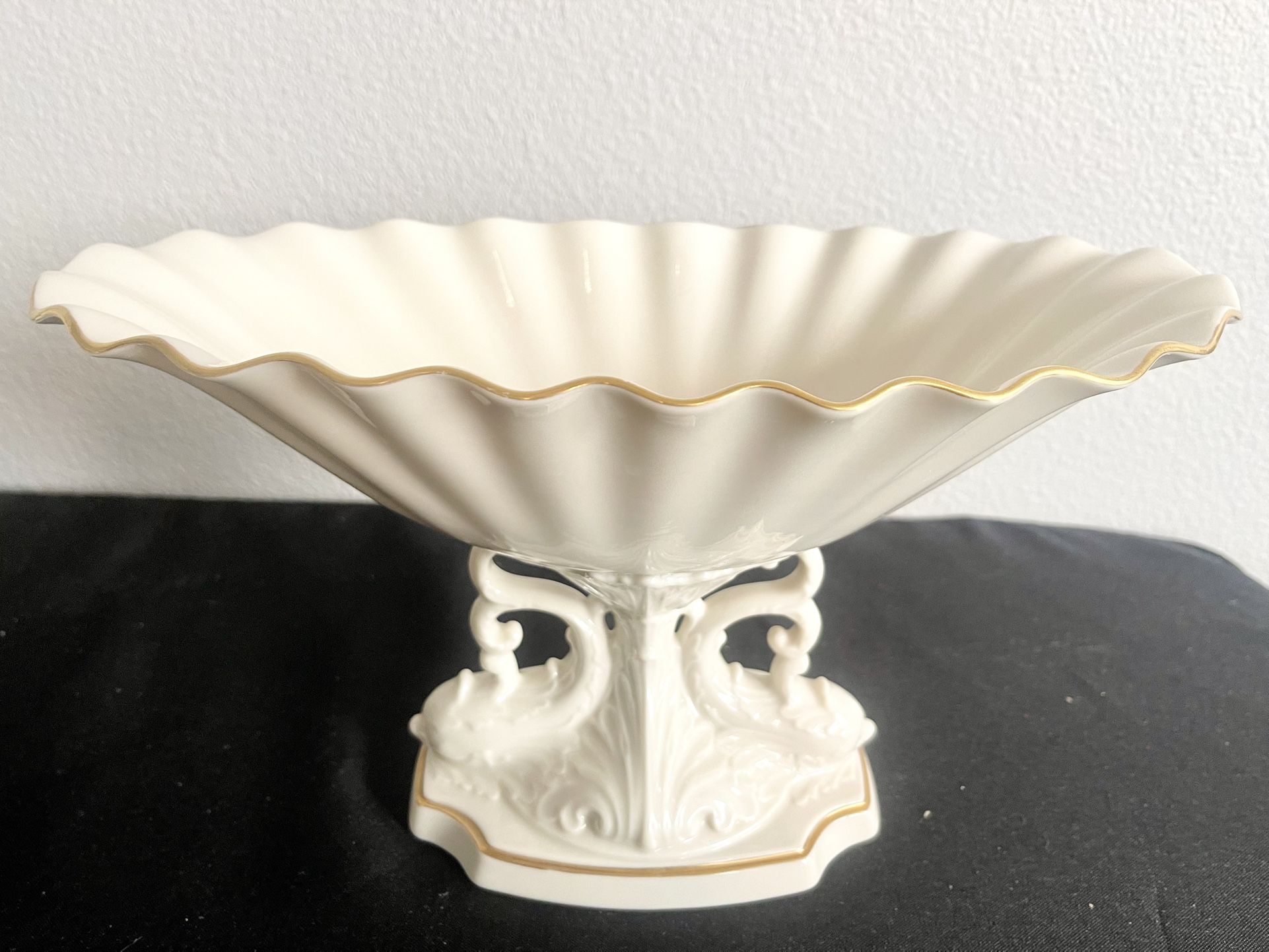 A refined example of classic Lenox “Aquarius” porcelain, this elegant pedestal bowl features luminous ivory glaze, graceful scalloped edges, and delicate 24k gold trim. The sculpted pedestal base adds height and presence, making it a timeless statement piece for a dining table, sideboard, or entry display. Beautiful both as décor and functional serveware, this bowl reflects Lenox’s renowned craftsmanship and enduring design — perfect for collectors or those who appreciate traditional elegance. Details: • Measures 12” x 6.75” • Excellent condition — no chips or cracks 🌸 One of many cherished items I inherited from my mother’s Lenox collection. Every piece holds special meaning and fond memories from my childhood home and her wonderful gatherings and celebrations. As I work through a very financially challenging time, I’m needing to part with these treasured items. My hope is that each piece finds a lovely new home with someone who will truly appreciate it. Asking $75 obo ⸻ ⚠️ Important Information ⚠️ Price is for one item only — the specific piece named above. The “collection” photo is included to show all Lenox items also for sale as a reference only. Each Lenox piece is sold individually and listed separately.