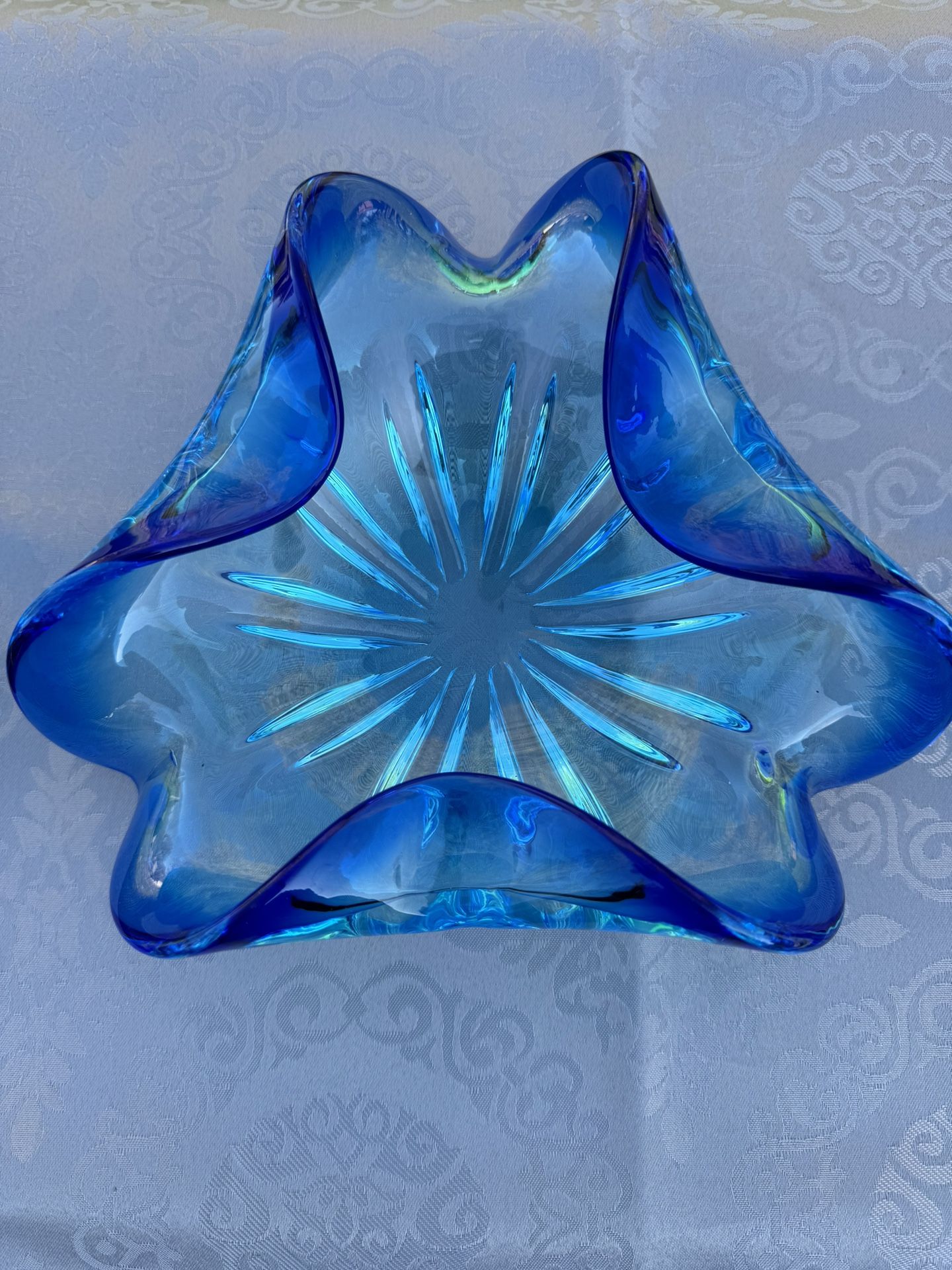 Vintage, Blue, Glass, Large, ASHTRAY, NEW