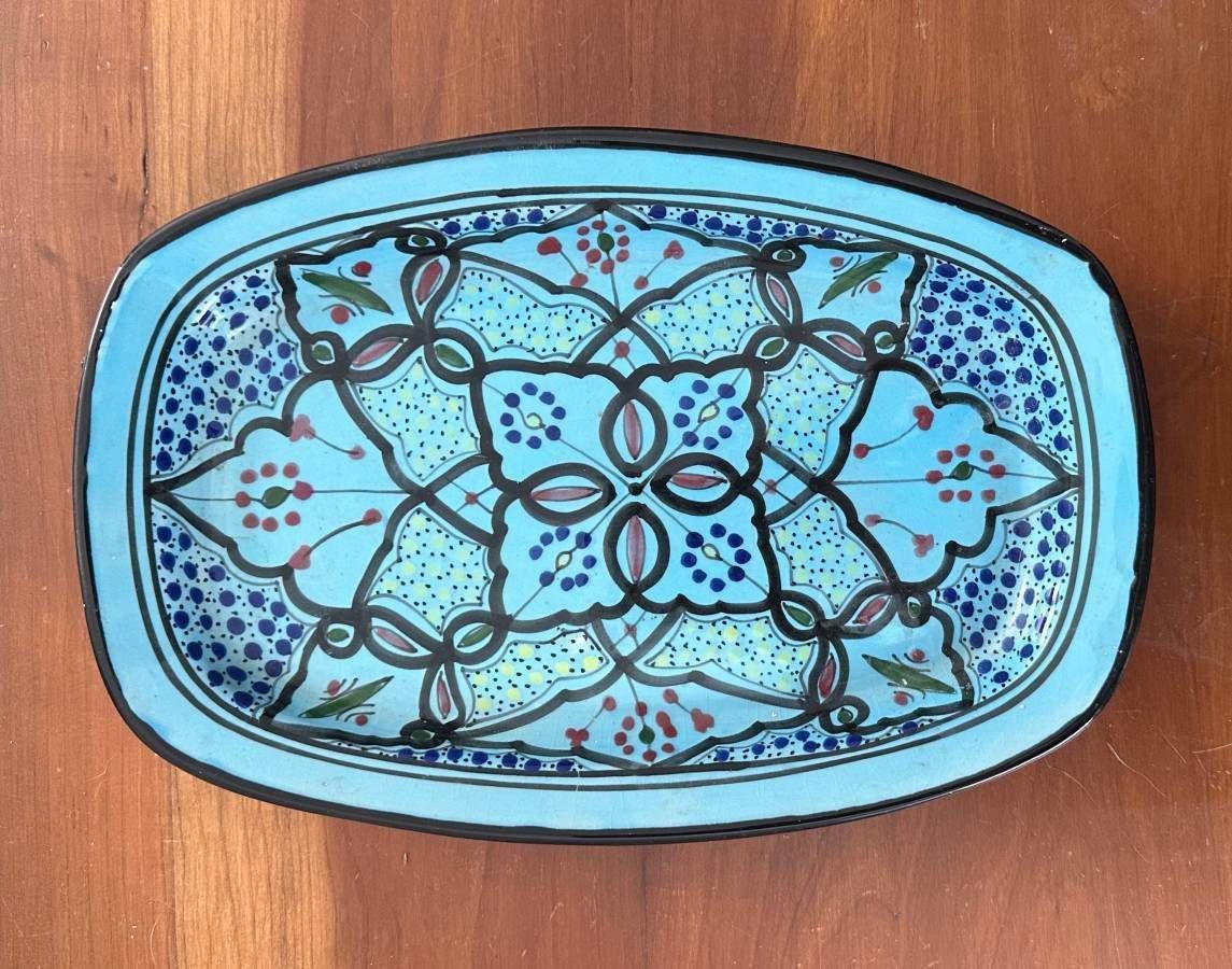 Vintage Le Souk Ceramic Tunisia Hand Painted Glazed Platter Dish