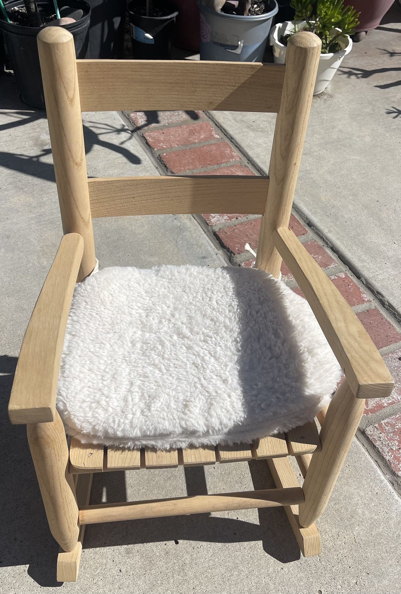 Wood Childs Rocking Chair Excellent Condition, Hardy used Asking $35 OBO Product Description If you want the perfect item for your kid's room, consider the Lipper Child's Rocking Chair in Natural as the perfect addition! This kid's sized rocker is perfectly proportioned, featuring a traditional rocker style with bow rockers, straight, high back, wide arms, four section bracing and traditional styling. The warm Natural color of this toddler rocker will fit with any room d‚cor and the all wood construction will last for years of use. Your child can sit and rock for hours in comfort by themselves or with a stuffed companion! They will enjoy the rocking motion that will keep them soothed and comfortable for hours rocking in their Lipper Child's rocking chair. Rocking Chair measures 14.5" x 19.75" x 23.75"