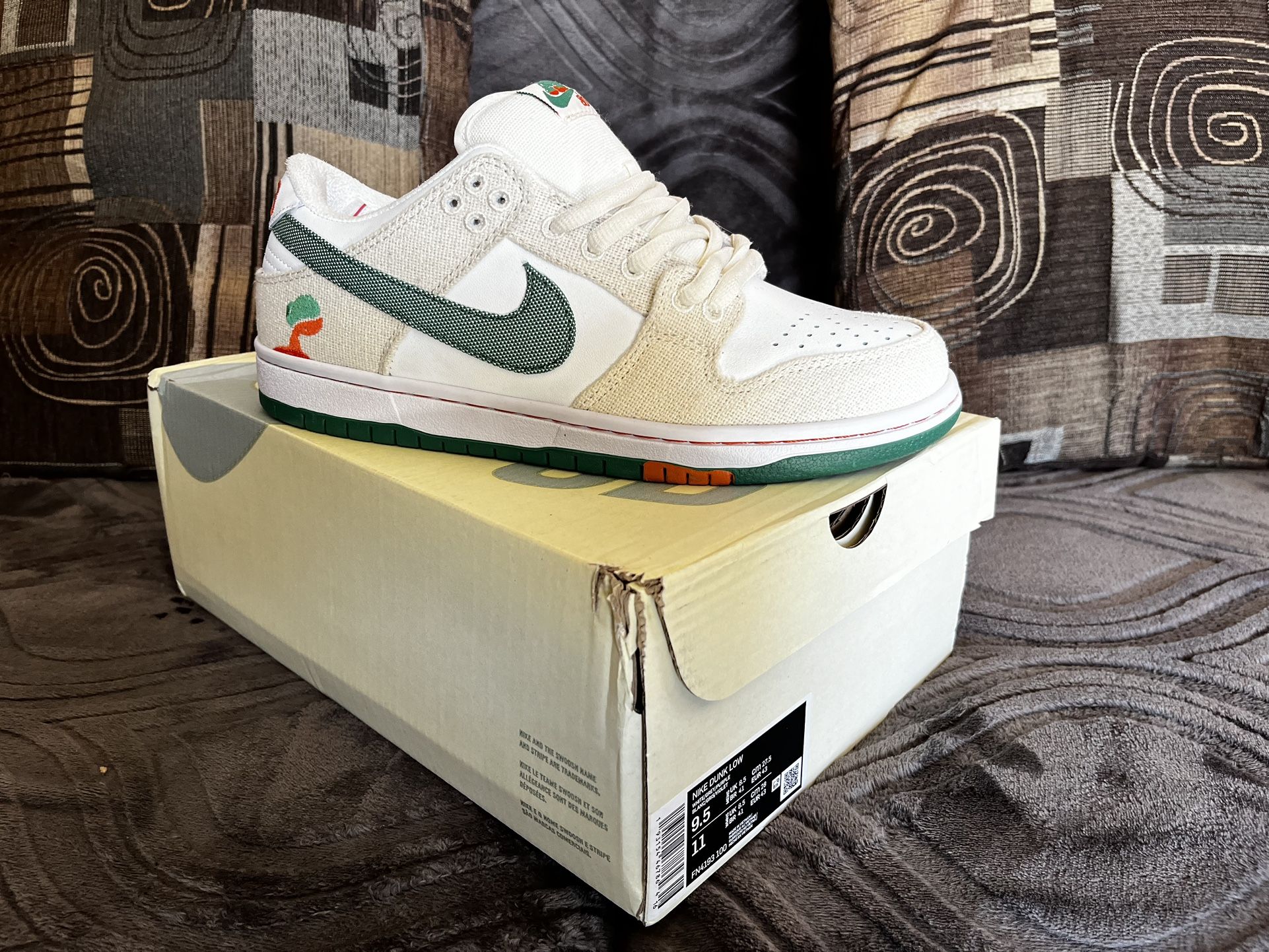 I have some low dunk jarritos on man sizes 7 7.5 8 8.5 9 11 sizes available Asking $140 let me know if you need any