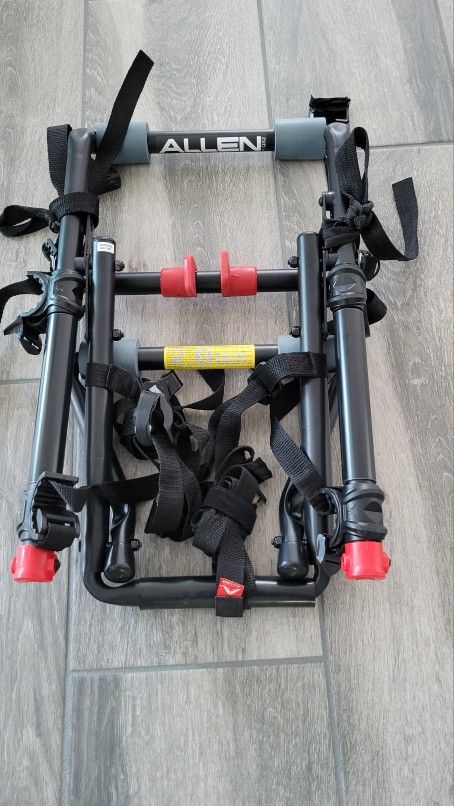 Allen Sports Deluxe+ 2-Bike Trunk Mount Bike Rack/Carrier Model QS2 Fits 1 or 2 bikes on sedans, hatchbacks, minivans and SUV's High density foam padding, folds flat for storage Weighs 9 lbs New Cash only