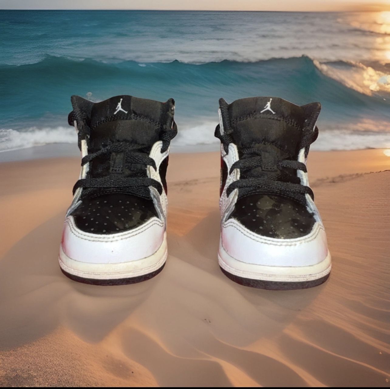 Jordan Nike Toddler 1 Mid Td White/Gold, White/Multi/Color/Black- SIZE 10C