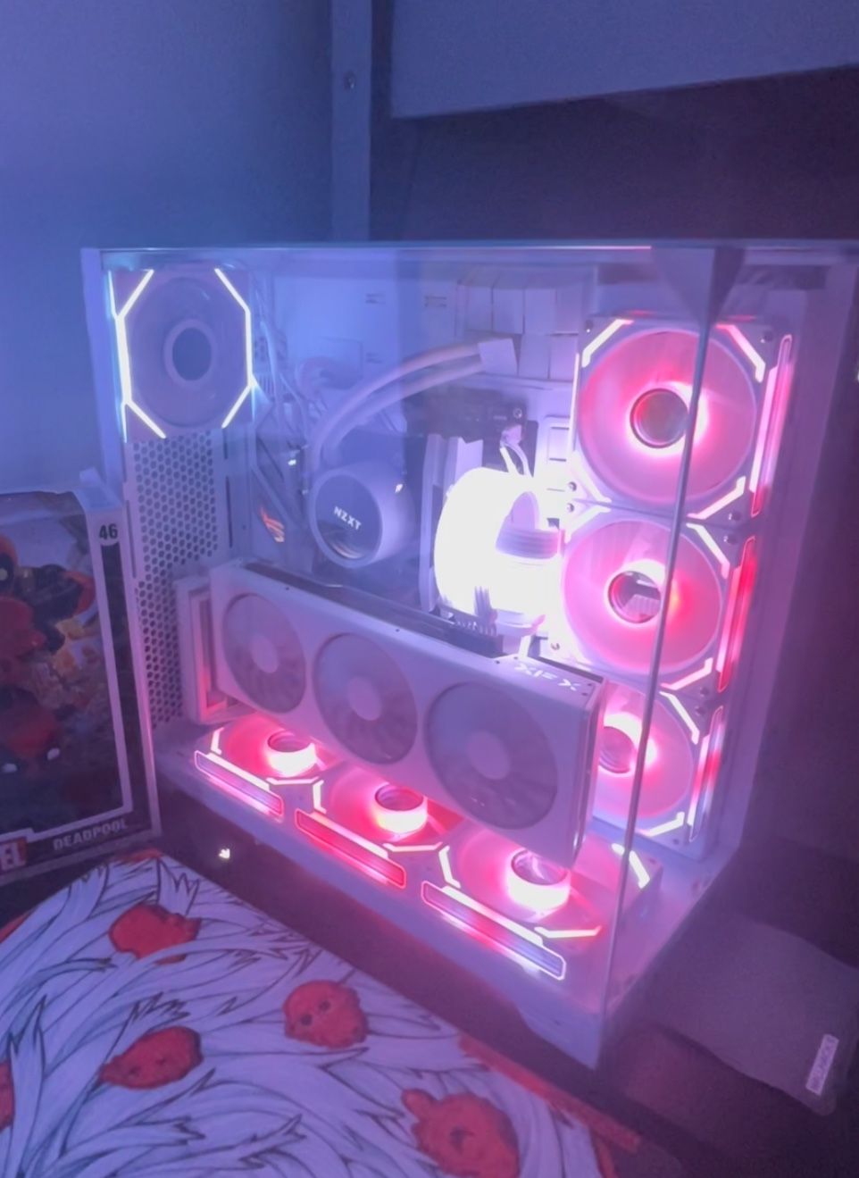 Has a rx 7900 xt 20 gigs, 32 gigs of ram , Strimmer cables, Custome painted gpu, AMD Ryzen 7 7800X3D