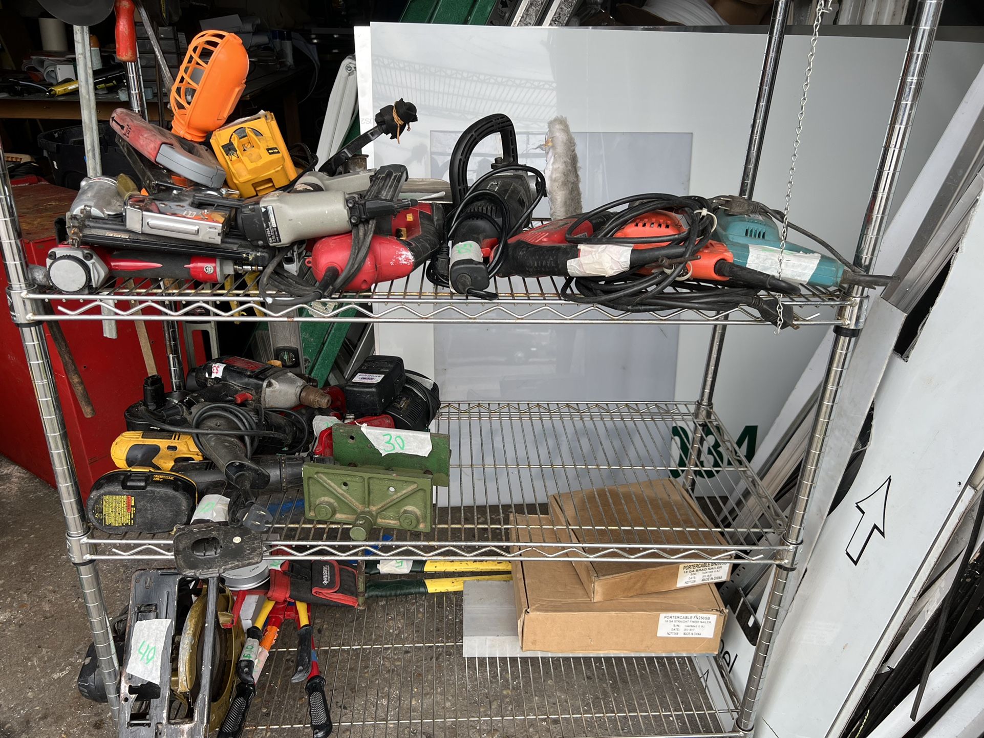 Drills, Electric Saw, Vise, commercial vacuum, Staplers, Banner rolls for Signs, vinyl cutters with Computer has Flexi Sign installed & more… You can come & see directly @ 101 W Suffolk Ave. C I. Or Call @ 631-348-SIGN
