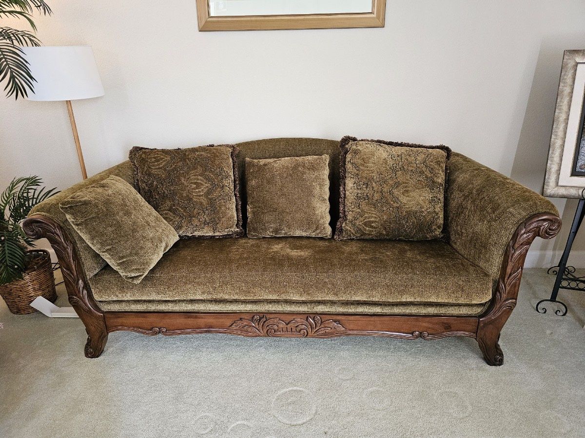 3 piece sofa set in good condition. Will sell as one set only. Solid wood. Includes all cushions in photo