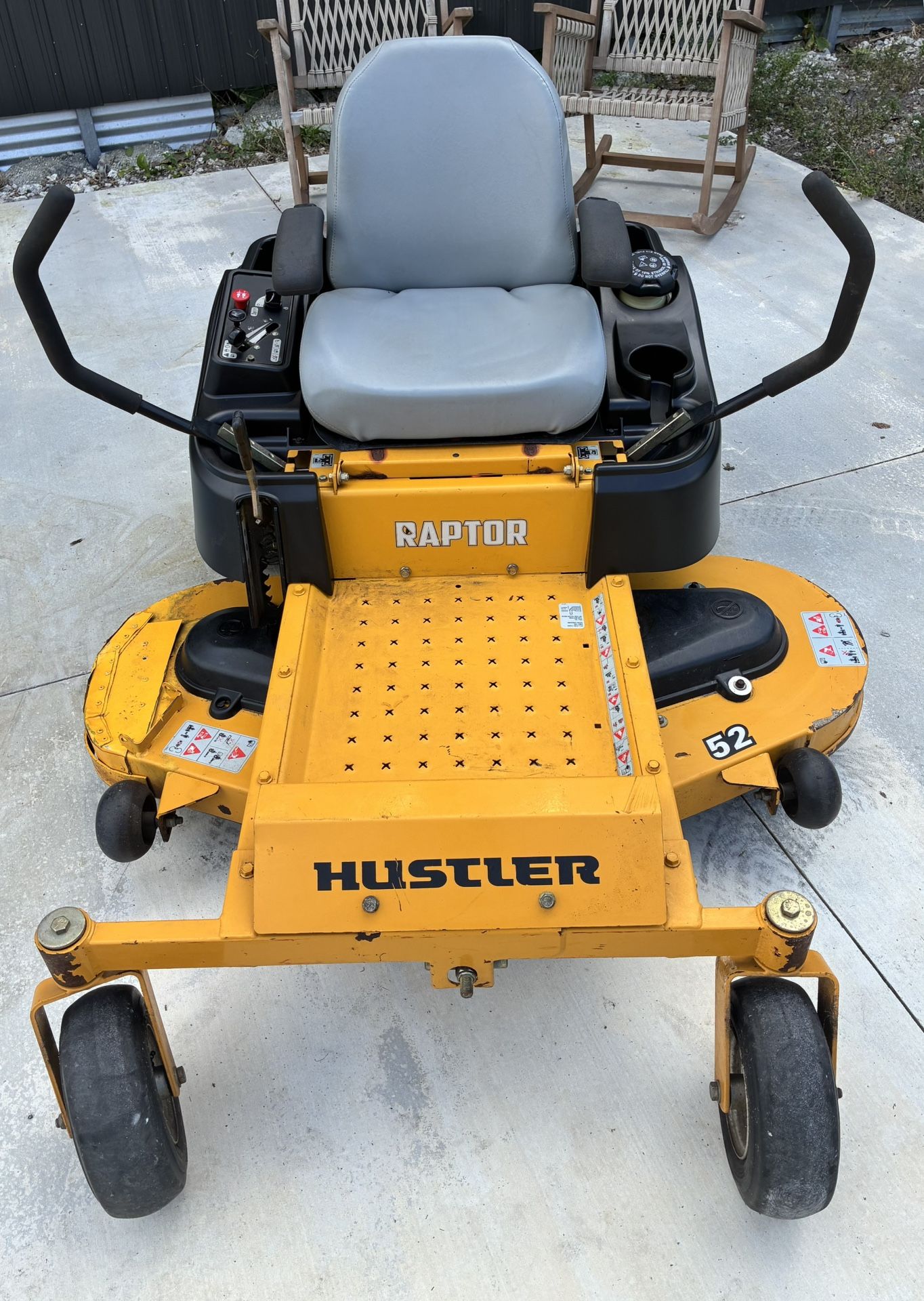 Hustler Raptor commercial zero turn lawn mower, 52” deck, great condition, doesn’t need anything, ready to work, new battery. Kawasaki FR691V, delivery available.